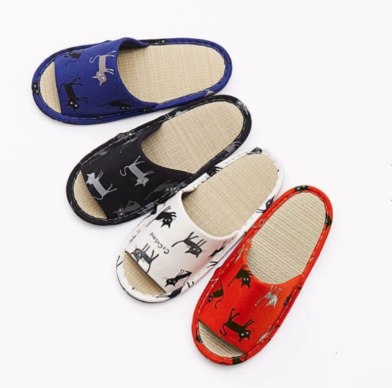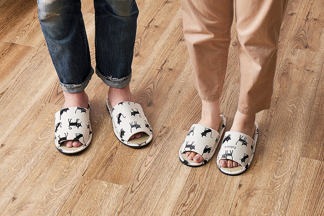 【汗ばむ季節に】熊本県産のい草を使用したネコ柄スリッパでサラっと快適に。累計販売数10,000足突破!