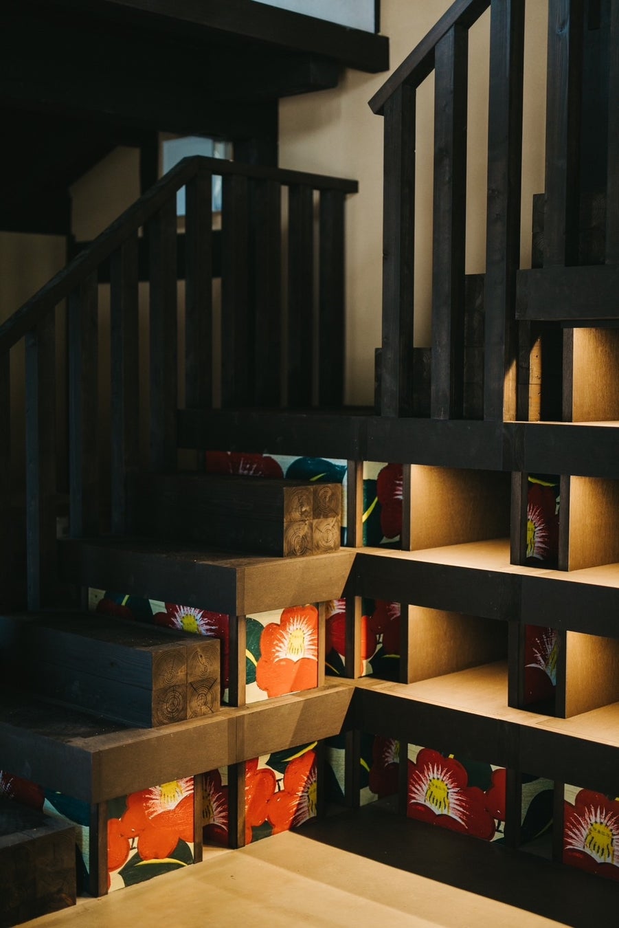 古き良き町並みに馴染む、和風建築の美しさを際立たせた外観。梁や欄間には、もともと使われていた古材を活用し、町の歴史を五感で体感できる心地よい空間が完成しました。