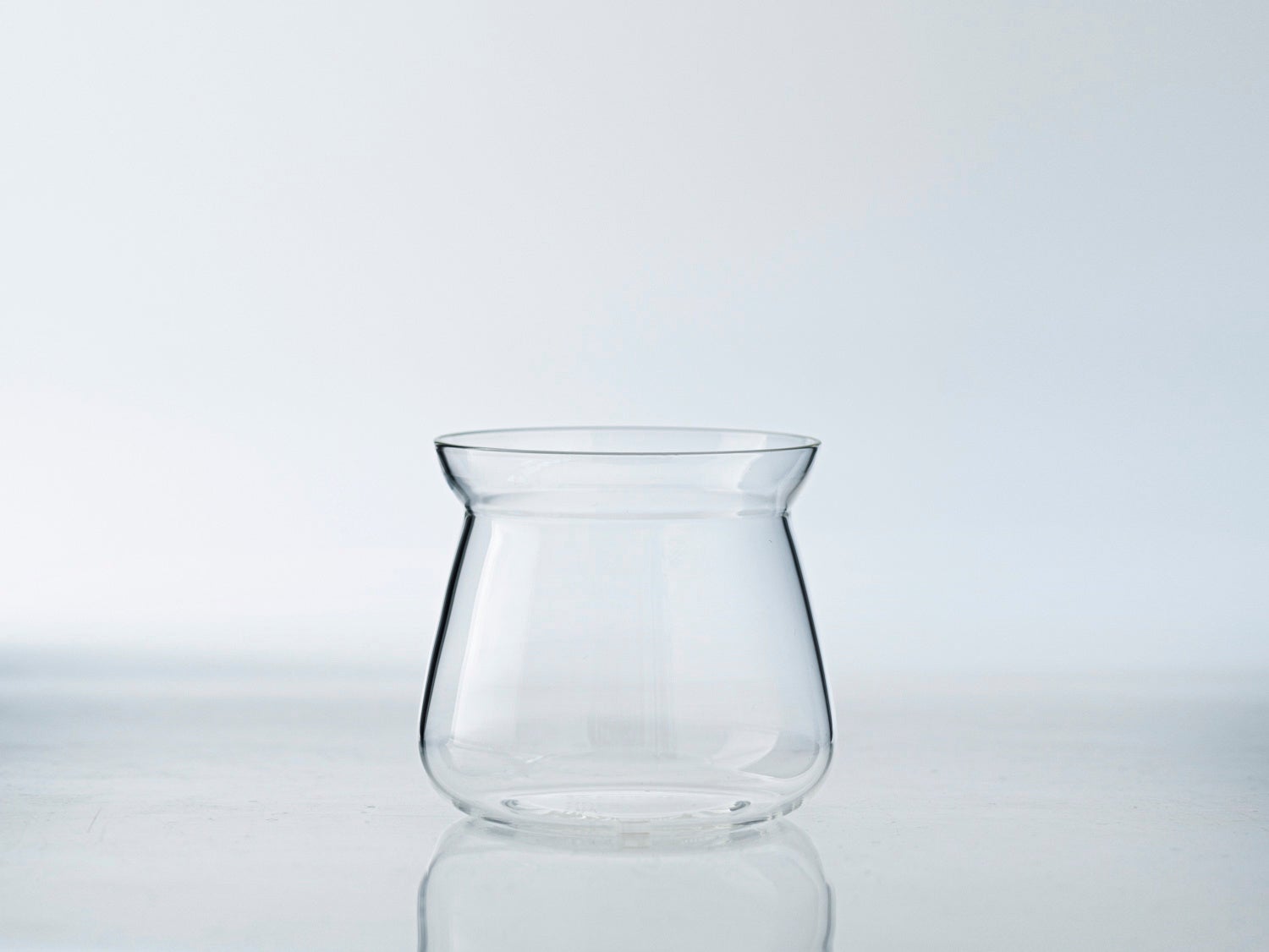 取っ手が無いミニマルなフォルムと、高い透明度の強固なガラスは、