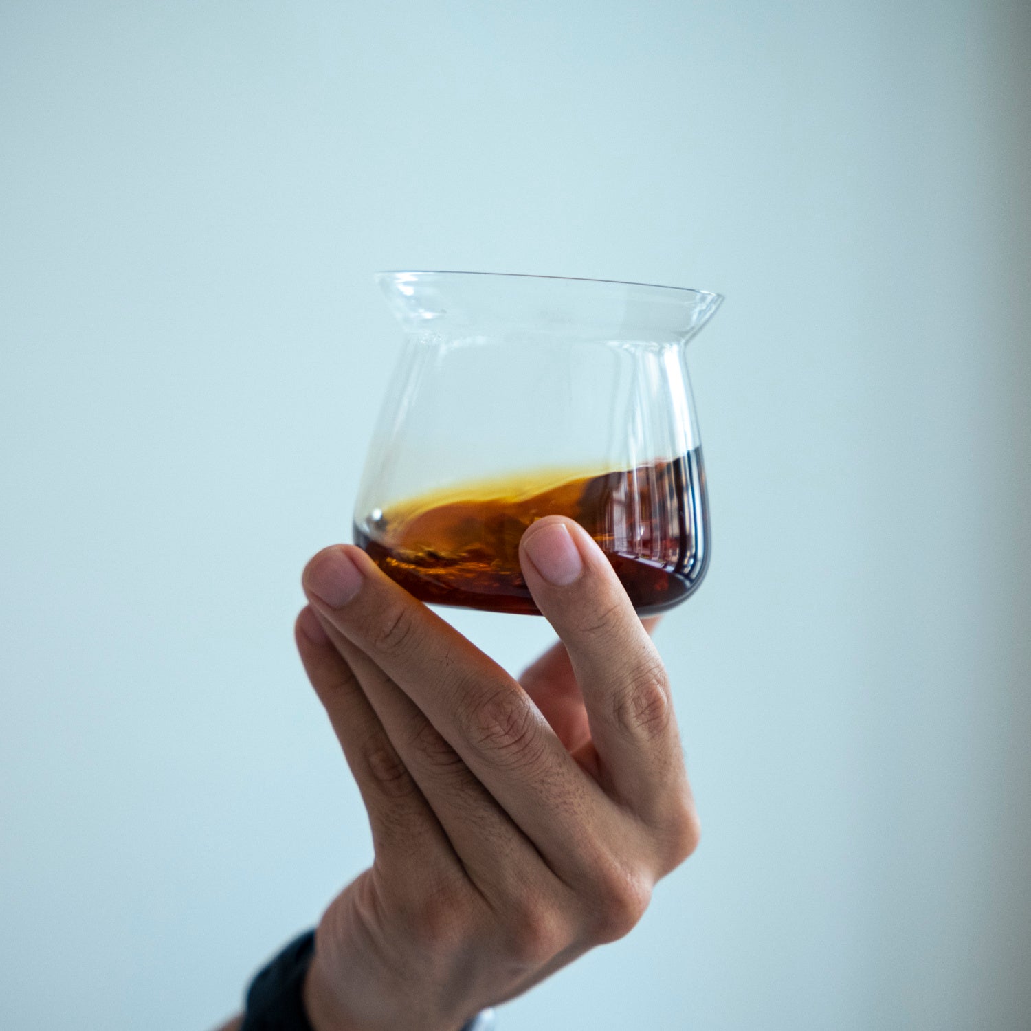 コーヒーを飲むときに、鼻まですっぽりとグラスに入る設計で、香りや甘みに包まれるような体験ができます。
