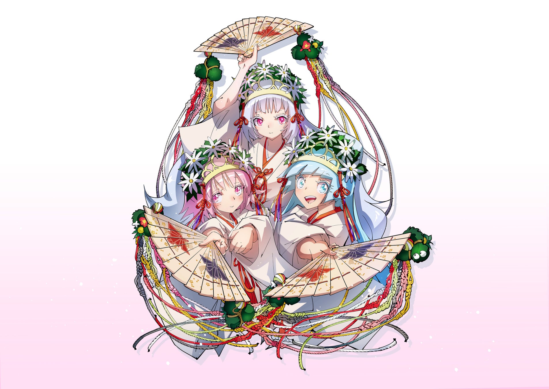 作者・武井宏之先生による出雲限定描き下ろしイラスト「神の国出雲の三巫女」をはじめ、夏休み仕様のファッションに身を包んだキャラクター達が皆さんをお出迎え。