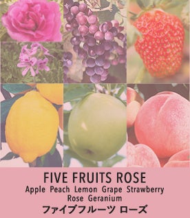 ローズ、そして日本の自然が生育した5つの果実。選び抜かれた原料からは、抗酸化作用、スパ・スキントリートメント効果を体感できます。充実のスキンケアが、まるで果実のようにみずみずしいお肌を作ります。贅沢なフレグランスに包まれて、ひとときのリラックスタイムを特別な時間に…。