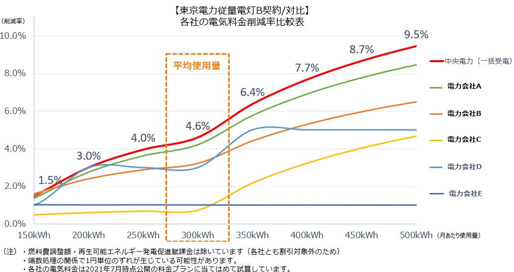 ※1 電力使用量が200kWh以上、40A契約の場合の専有部における切替電力会社の上位5社と比較し最安の削減率としています。