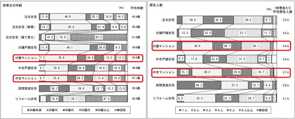 ※8 参考:国土交通省「令和2年度 住宅市場動向調査報告書」平成28年の厚生労働省「人口動態統計」によると、我が国の平均初婚年齢は夫が31.1歳、妻が29.4歳、第1子出生時の母の平均年齢が30.7歳となっていることから、40代は子育て中のファミリー層が多いと考えられる。