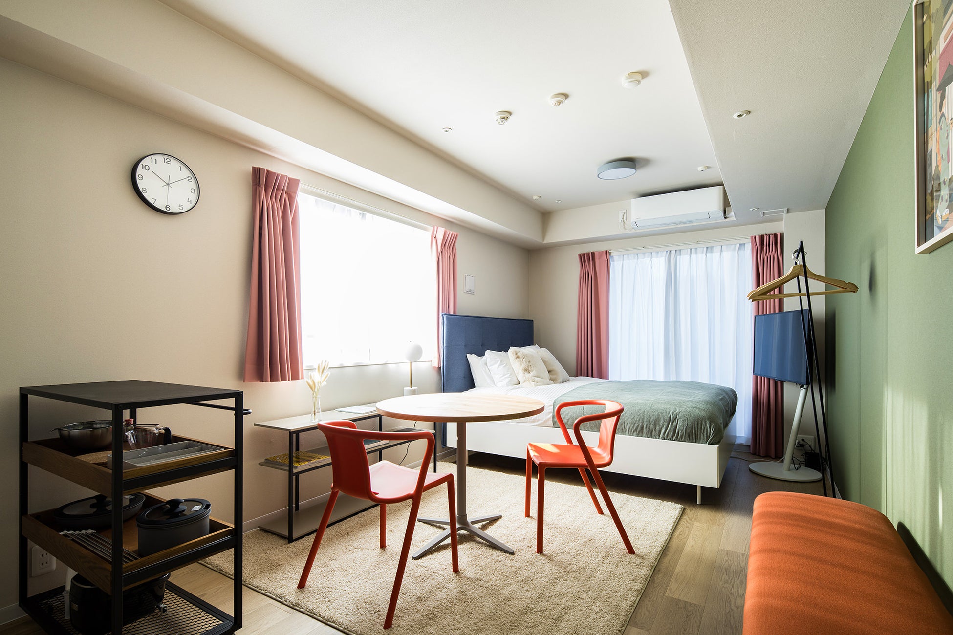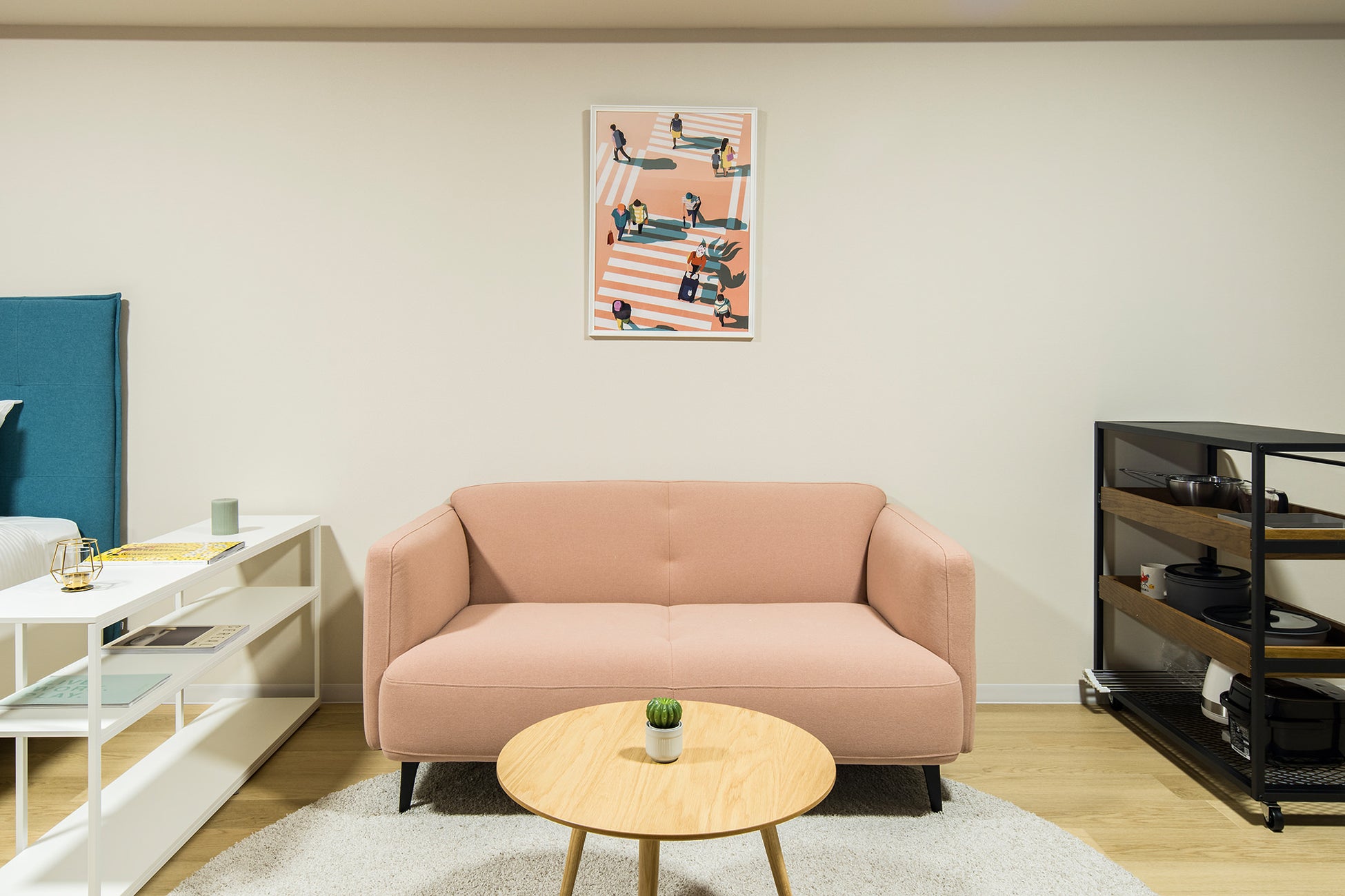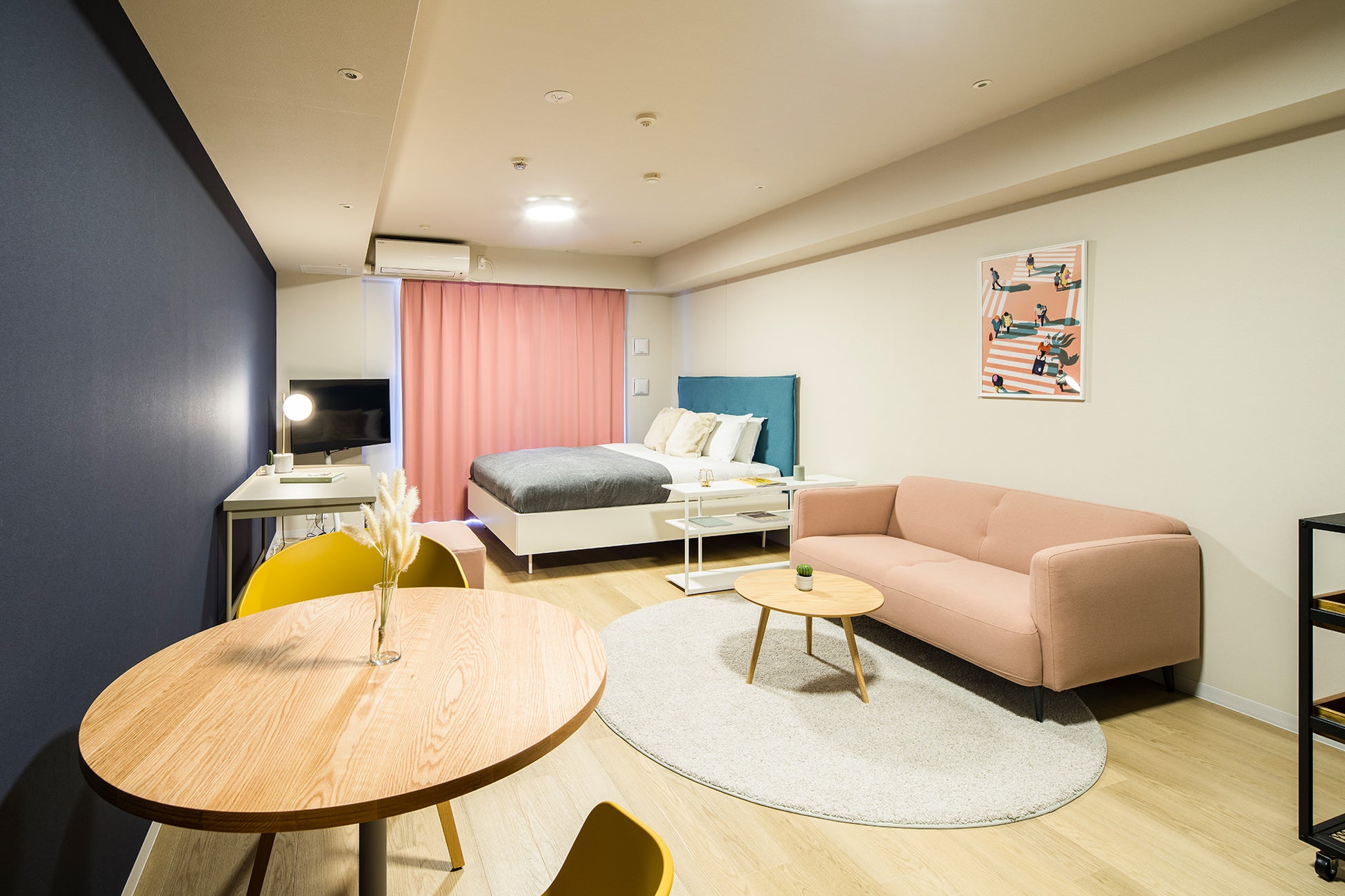 家具はデンマークの高級家具メーカー、BoConceptやHAYを取り入れ、ルームアートはロンドン在住の中国人のイラストレーターEmma Liとオリジナルのアートを作成しました。世界的都市である銀座において、多国のエッセンスが折り混ざる、唯一無二のお部屋をお楽しみいただけます。