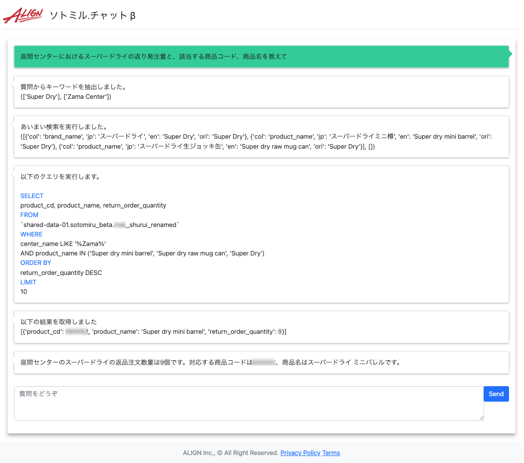 ・チャット形式で社内DBや機密情報に関する問い合わせができる