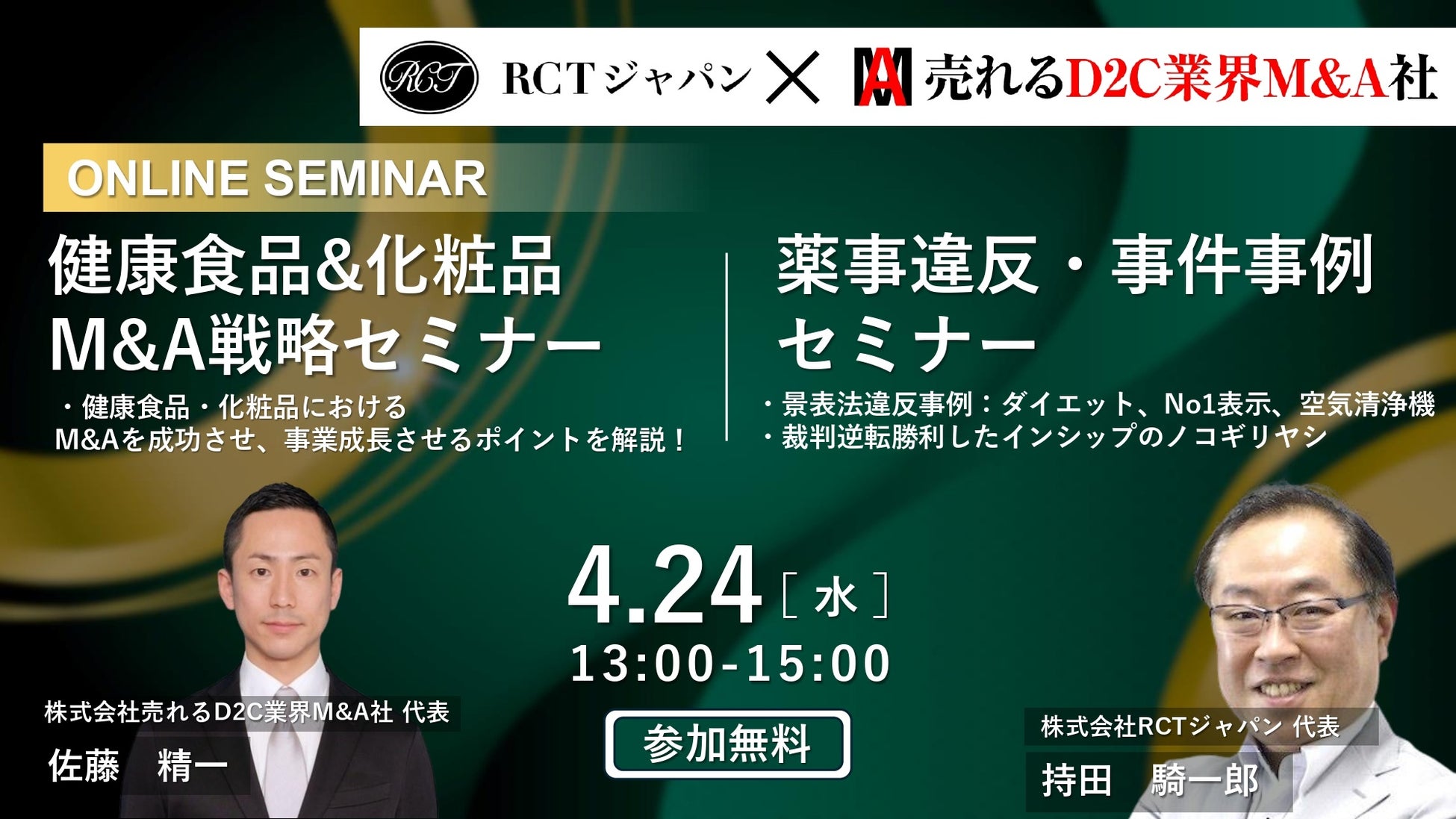 機能性表示食品を含むヘルスケアビジネスの危機管理とM&Aの可能性について、薬事とM&A専門家が解説! 参加費無料のオンラインセミナーを4月24日(水)に開催