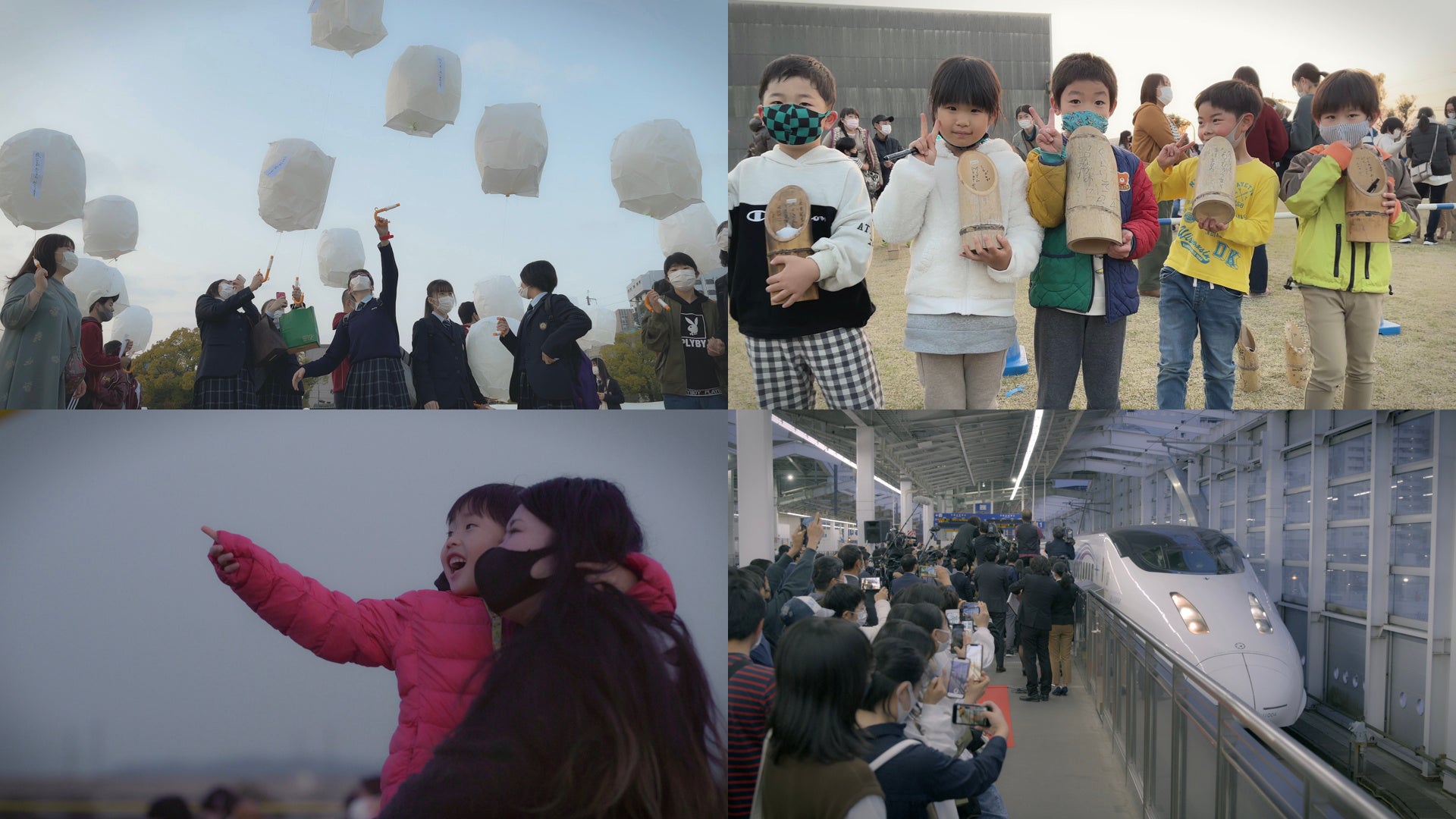 「流れ星新幹線」は、九州新幹線が全線開業10周年を迎えるにあたって、2021年3月14日に光を放ちながら鹿児島中央駅〜博多駅間(約250km)を一夜限り走り抜けた特別運行列車です。運行に際して願いごとを募集したところ、全47都道府県・10歳未満〜90歳代から計8,350通の応募がありました。ご応募いただいた願いごとの中から777点は新幹線車両へのラッピングや車内ポスターにて掲出するとともに、心のこもった全ての願いごとは太宰府天満宮に奉納されました。