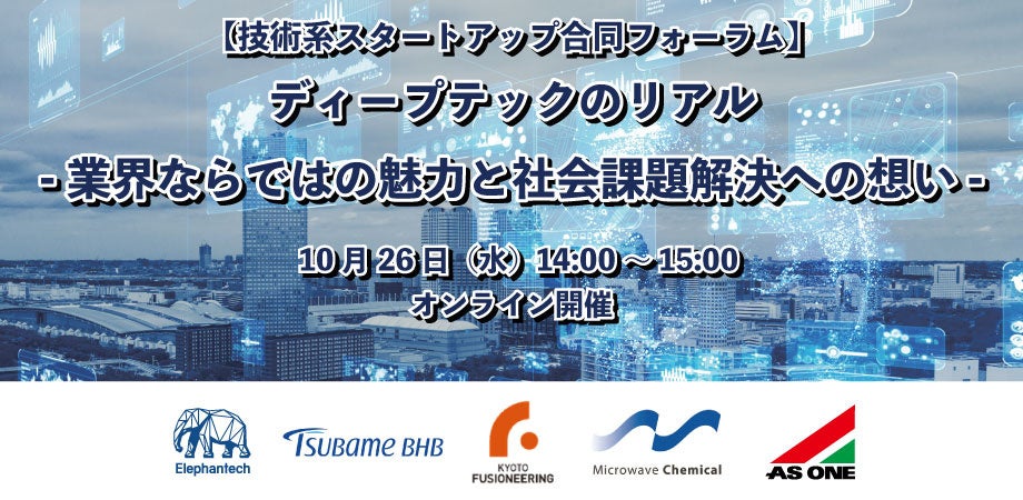 【10/26(水)】技術系スタートアップ4社による初のオンラインイベント「ディープテックのリアル-業界ならでは魅力と社会課題解決への想い-」を開催