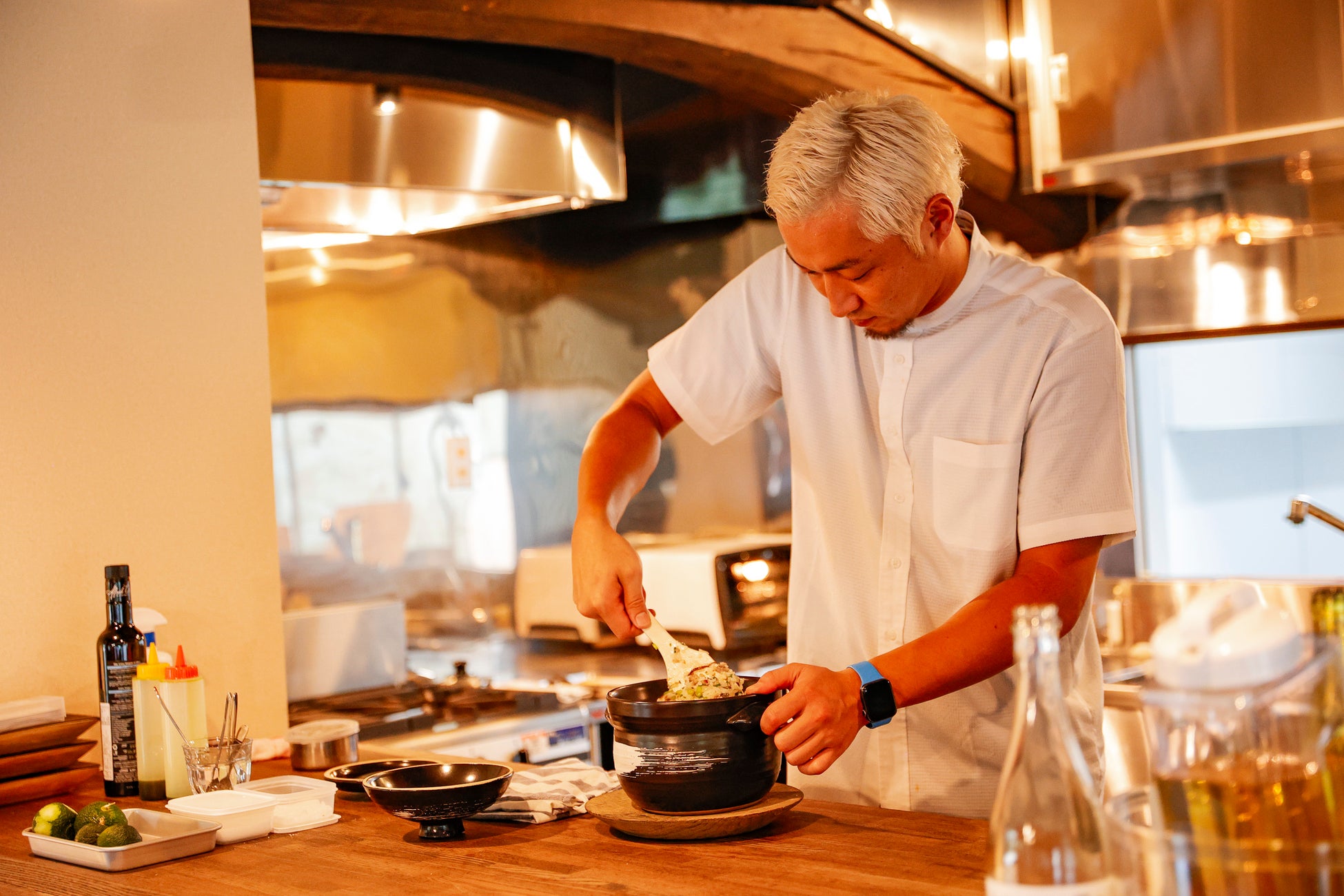 都内等からシェフを招き、食のイベント「シェフズテーブル」を定期的に開催します。開催に先立ち、鹿肉をはじめとする安芸高田市の食材(ジビエ、米、川根柚子、青ネギ、川魚、スッポン、山菜、きのこなどの旬食材や、お酒、味噌、醤油などの調味料)を生産現場でシェフに視察してもらい、食材の魅力を理解した上で料理を考案いただきます。「シェフズテーブル」当日は、県内外から訪れた約10名のお客様に、安芸高田市ならではの食体験を提供します。