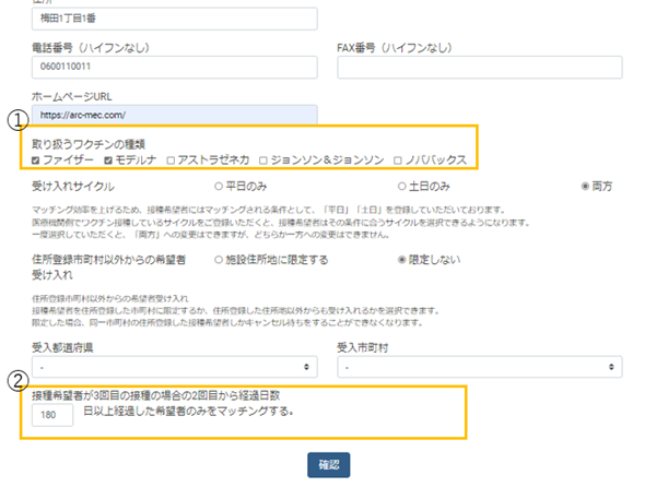 各医療機関が自施設で取り扱うワクチン種類を事前に登録することができます。
