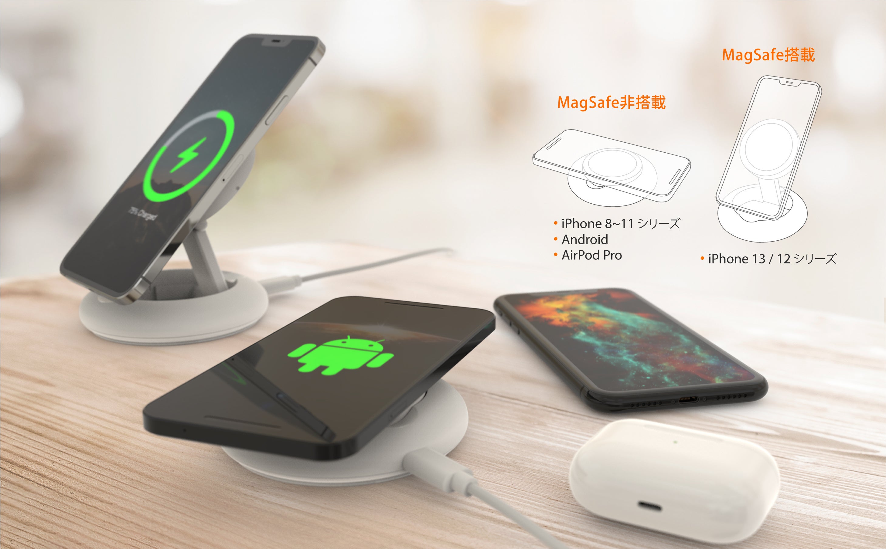 MagSafe®認証・スタンド搭載15W急速充電できる『JUPW1107NP』