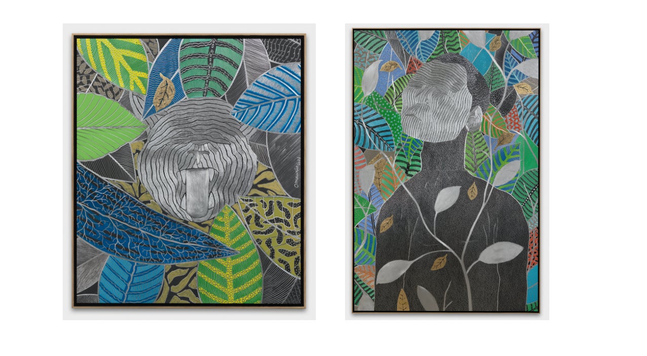 ンボアは、スチールパネルに絵画と彫刻を融合させた独自の芸術活動を展開しています。複雑な幾何学模様の緑豊かな背景の中に無表情な人物を配し、色彩とスチールの質感や光沢を活かして、被写体の内なる精神を表現しています。スイスのジュネーブを拠点に活動しており、ジュネーブのPace Galleryでの2022年の個展、フロリダ州パームビーチのPace Gallery、イスラエルのテルアビブのNassima Landauでのグループ展を含め、アフリカ、ヨーロッパ各国、中東、アメリカで活躍しています。「Immersion」は、ンボアにとって英国での初めての展覧会となります。