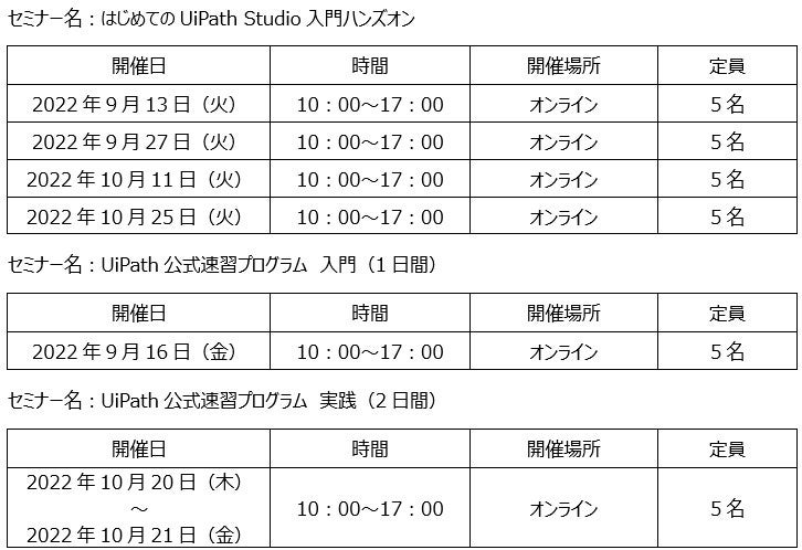 ■当社のUiPathトレーニングスケジュール