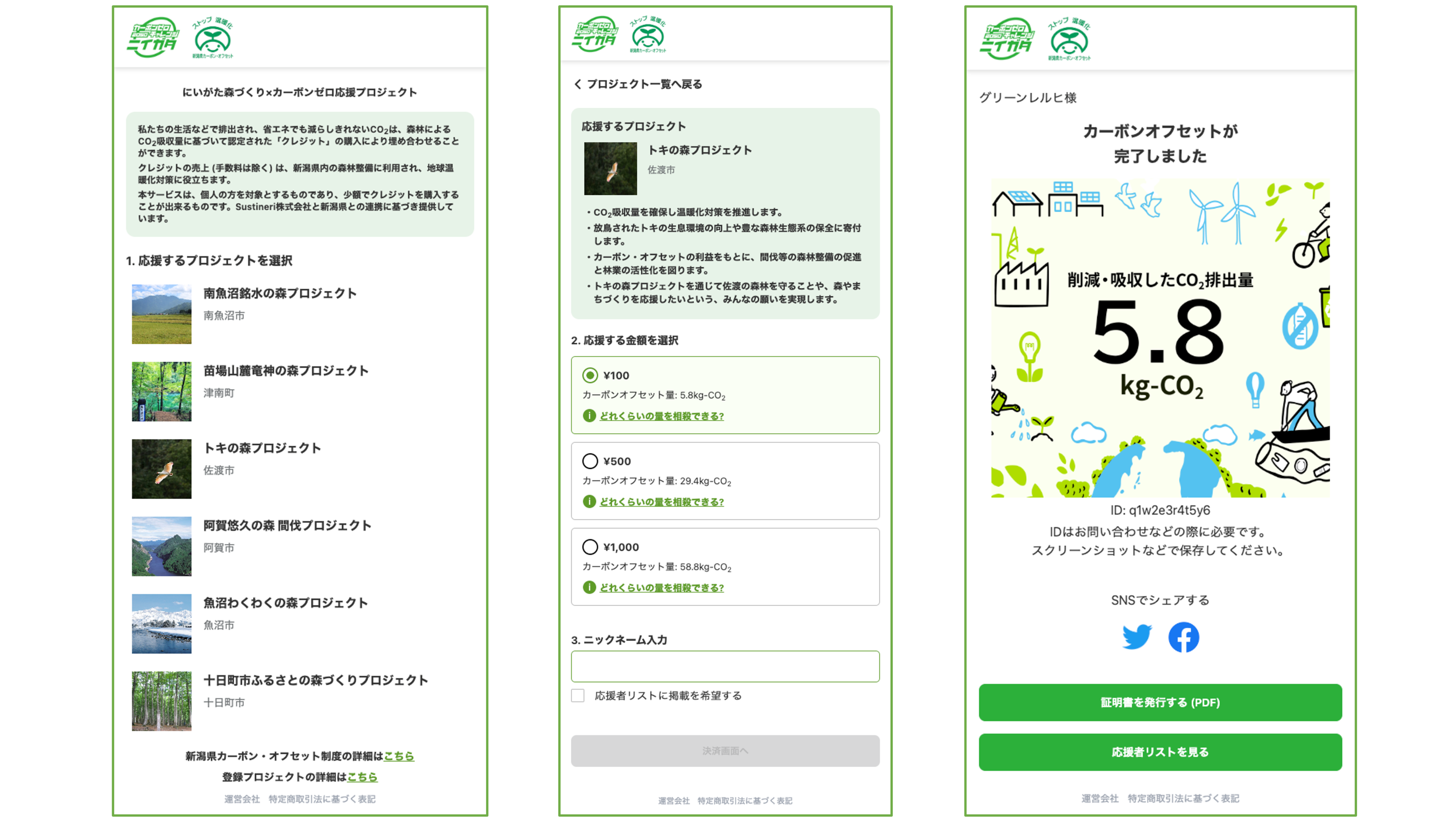 個人が少額のカーボン・オフセットを実施できるWebアプリを新潟県へ提供開始