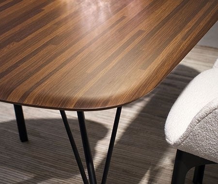 特殊な技術で成型した3Dプライウッドで、最大2m40cmの超大型のワークトップを木製テーブルを実現。また、木肌のやさしく温かみのある手触りはリアルな木だけがもたらす豊かな食感で、食事やワークテーブルなど、日々の生活の中で身体が触れて感じる質感を大切にしました。(https://store.toyokitchen.co.jp/item/94399.html※サイズ、形の展開多数あり)