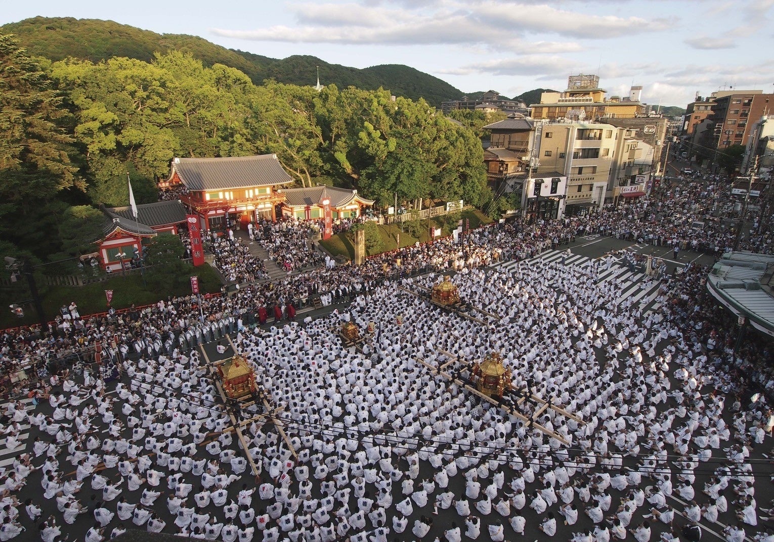 17日の神幸祭ではホテルからほど近い八坂神社からの神輿の出発を見学、その後市役所広場では神輿と一緒に写真撮影が出来る予定です。24日の還幸祭では、夕方四条通の八坂神社御旅所(やさかじんじゃおたびしょ)からの神輿出発を見たあと一度ホテルに戻り、八坂神社に「おかえり」の頃再び神輿を見に行くことも可能です。