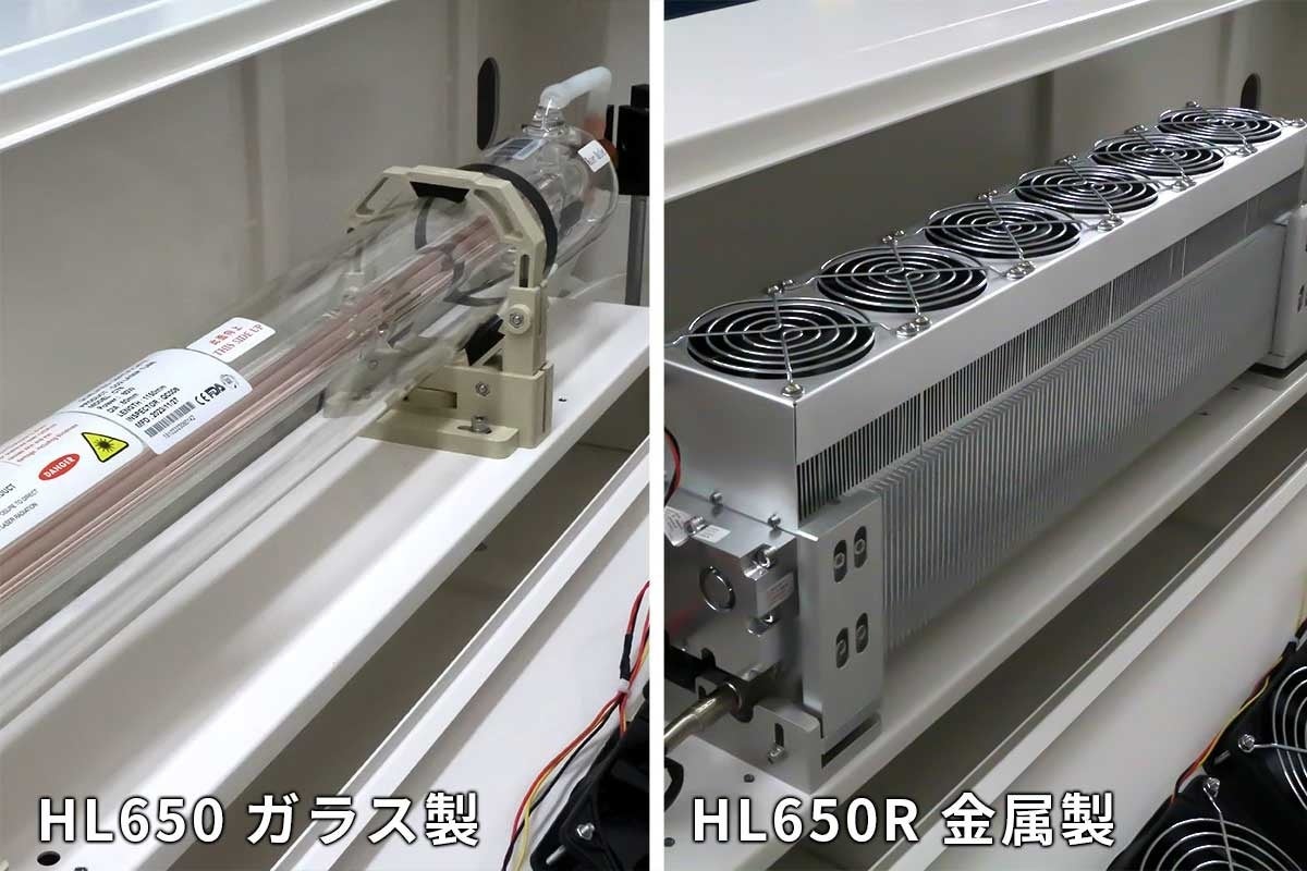 HL650はガラス製、HL650Rは金属製のレーザー発振器を搭載しています。