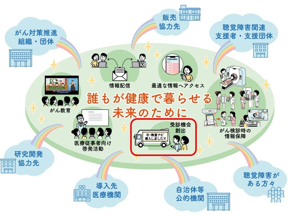 概要:誰もが安心してがん検診を受診できる社会を目指し、検査時の指示内容等を音声に加え映像でも伝えるシステムの開発と普及、がん教育などを行っている。