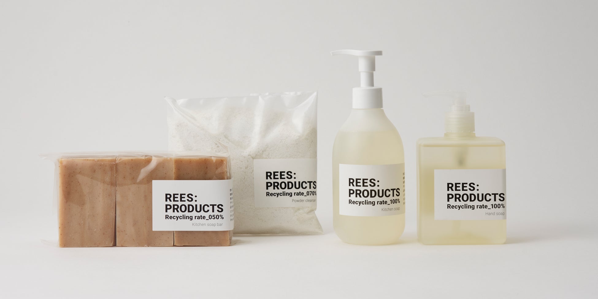 概要: 廃棄前の原料等を再生。ブランド名「REES:PRODUCTS」には一般的な3Rに加え、REBORN(生まれ変わる)、REPLY(顧客からの意見や反応)を大切にする想いが込められている。