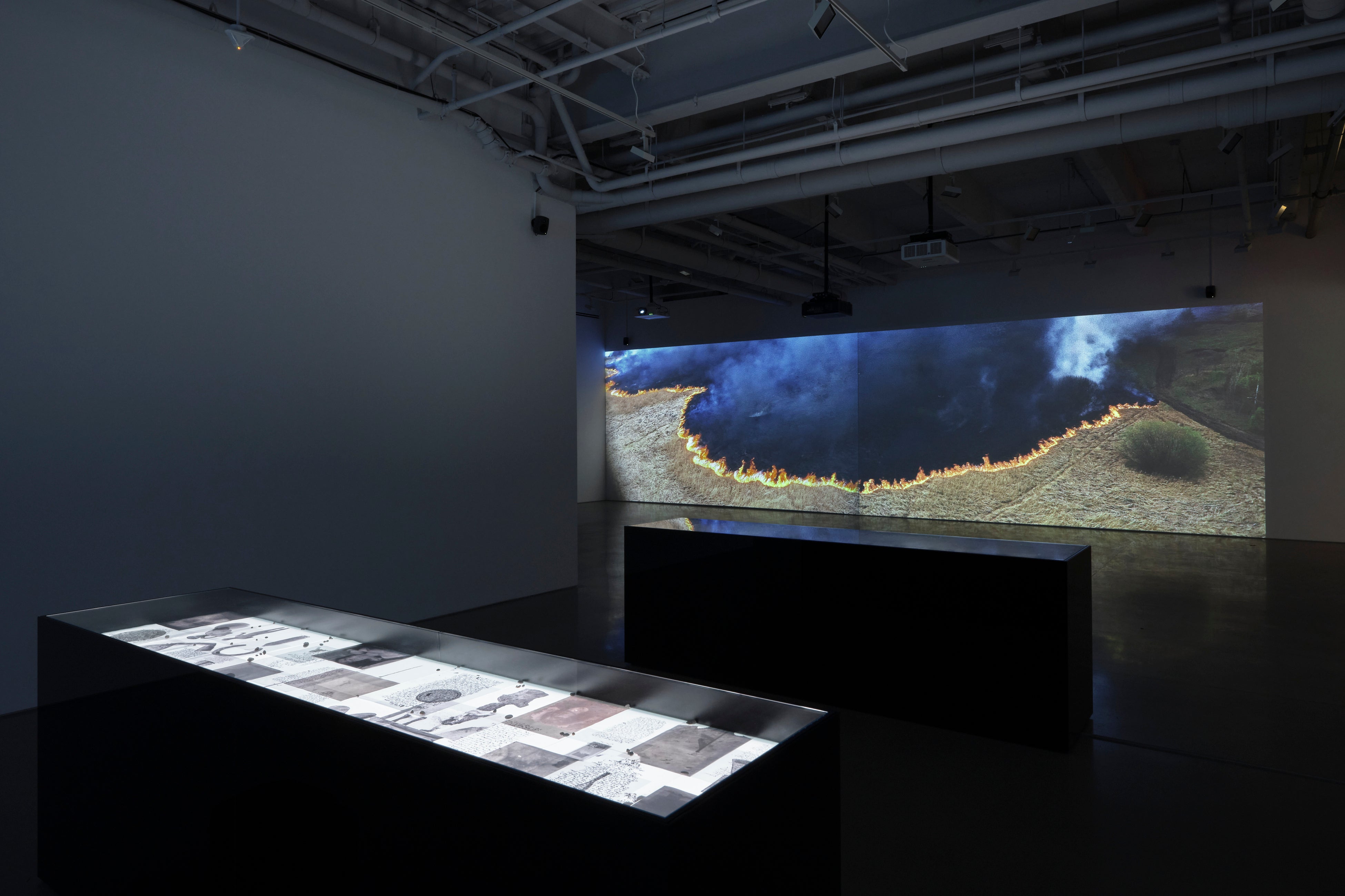 ステファンが詩的な霊感や歴史的な重要性をもつ土地を訪れフィールドレコーディングによって「音の記憶」を採集し、パティがその録音との親密な対話を重ねて詩を書き下ろし、さらにそのサウンドトラックに合わせてサウンドウォーク・コレクティヴが映像を編集する。こうした“往復書簡(=コレスポンデンス)”によって生まれたのが、本エキシビション/パフォーマンスの根幹を成す8つの映像作品です。これらの映像は、チェルノブイリ原発事故や森林火災、動物の大量絶滅といったテーマを探求するとともに、アンドレイ・タルコフスキー、ジャン=リュック・ゴダール、ピエル・パオロ・パゾリーニ、ピョートル・クロポトキンといった芸術家や革命家を参照しながら、人間と自然の関係やアーティストの役割、人間の本質について観るものに問いかけます。