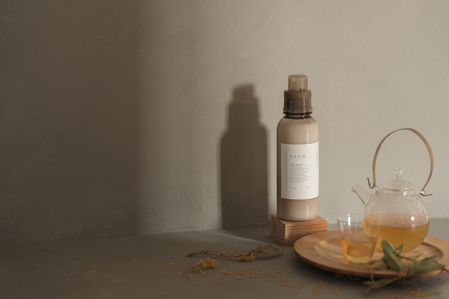 ブランドローンチ時よりNo.1人気の「キンモクセイの柔軟剤」は、やさしく広がる甘いキンモクセイにシトラスの爽やかさをひとさじ加えた、華やかながらも甘すぎない香りが「まるで本物」と大好評をいただいております。そんなキンモクセイの香りに今年は「紅茶の香り」を掛け合わせ、〈オスマンサスティーの柔軟剤〉として限定発売。suuw.らしい、秋を感じる上質な香りに仕上げました。
