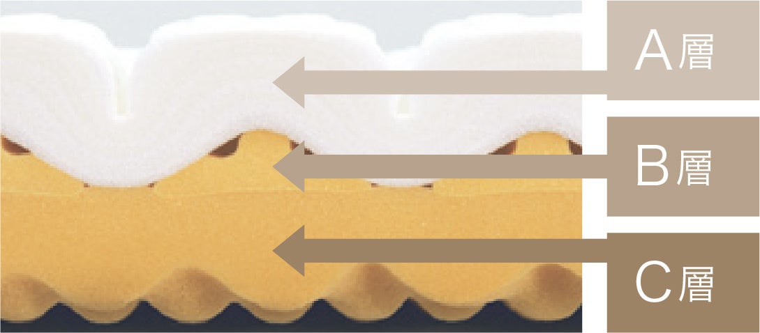 【C層】A・B層をソフトに受け止め腰部の沈みこみを防ぐバランスタイプ。上層の特殊な波型形状で通気性抜群。