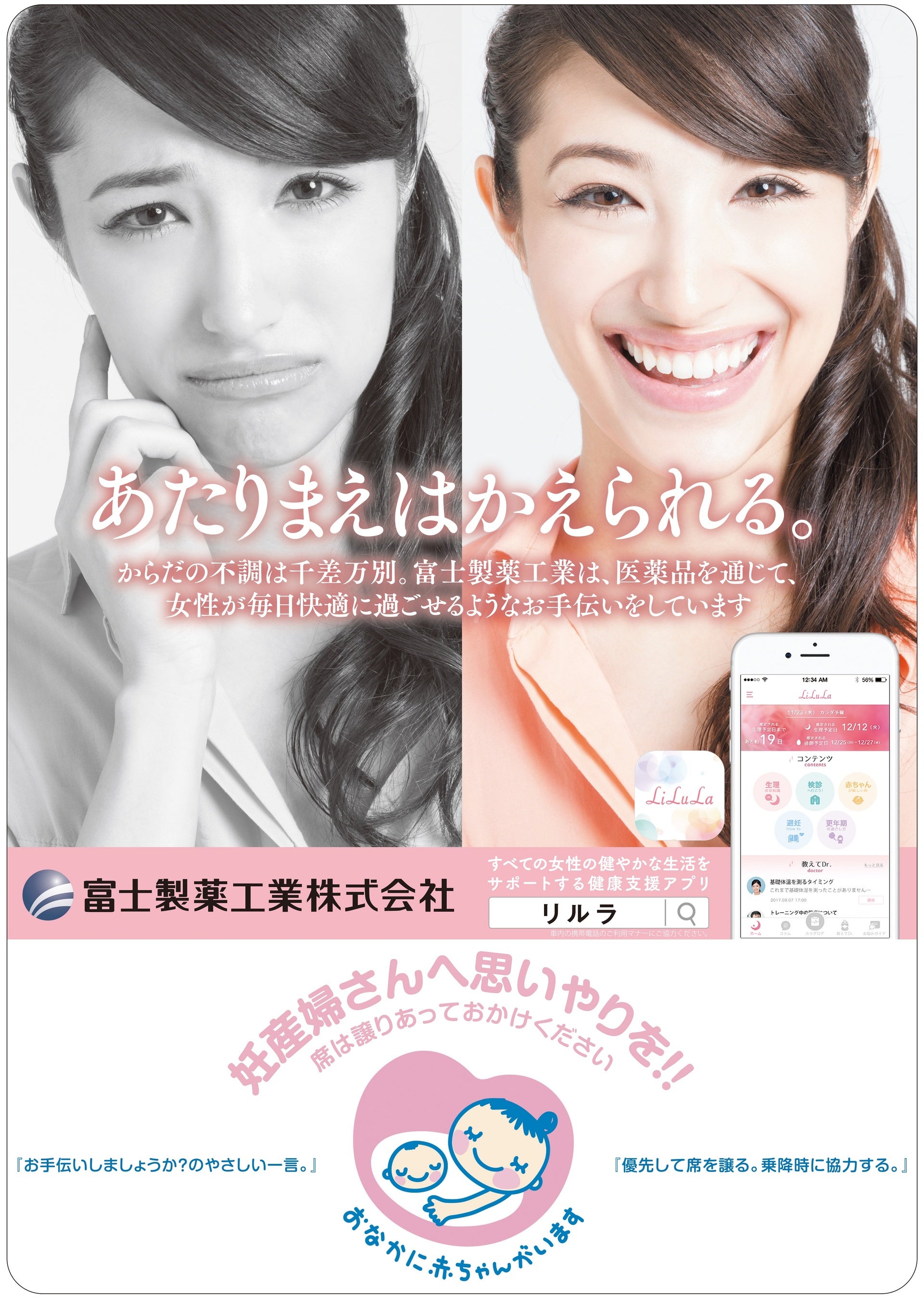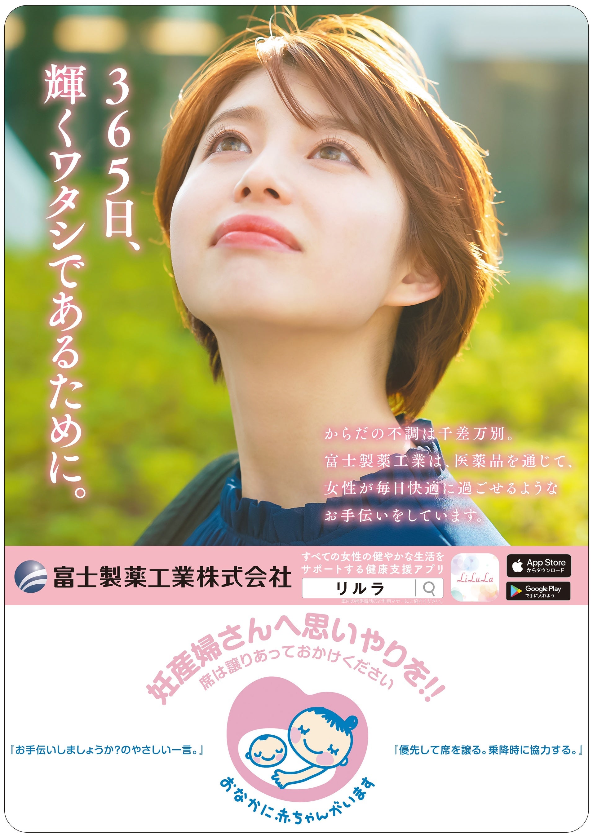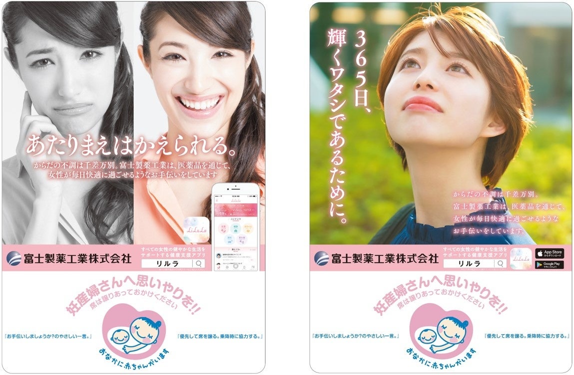 富士製薬工業株式会社(本社:東京都千代田区、以下「当社」)は、2022年9月1日より、都営地下鉄大江戸線の優先席エリアにおいて、当社の運営する女性のための健康支援アプリ「LiLuLa」とマタニティマークとのタイアップ広告の掲出を開始いたしましたのでお知らせいたします。