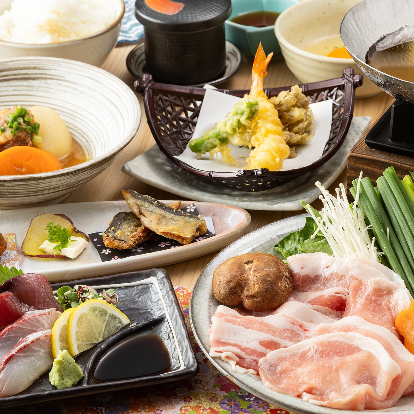 黒豚しゃぶしゃぶや桜島溶岩焼を始めとする贅沢料理、海鮮玉手箱や五感で味わう藁焼きといった鹿児島をちりばめた料理長こだわりの創作料理を提供する