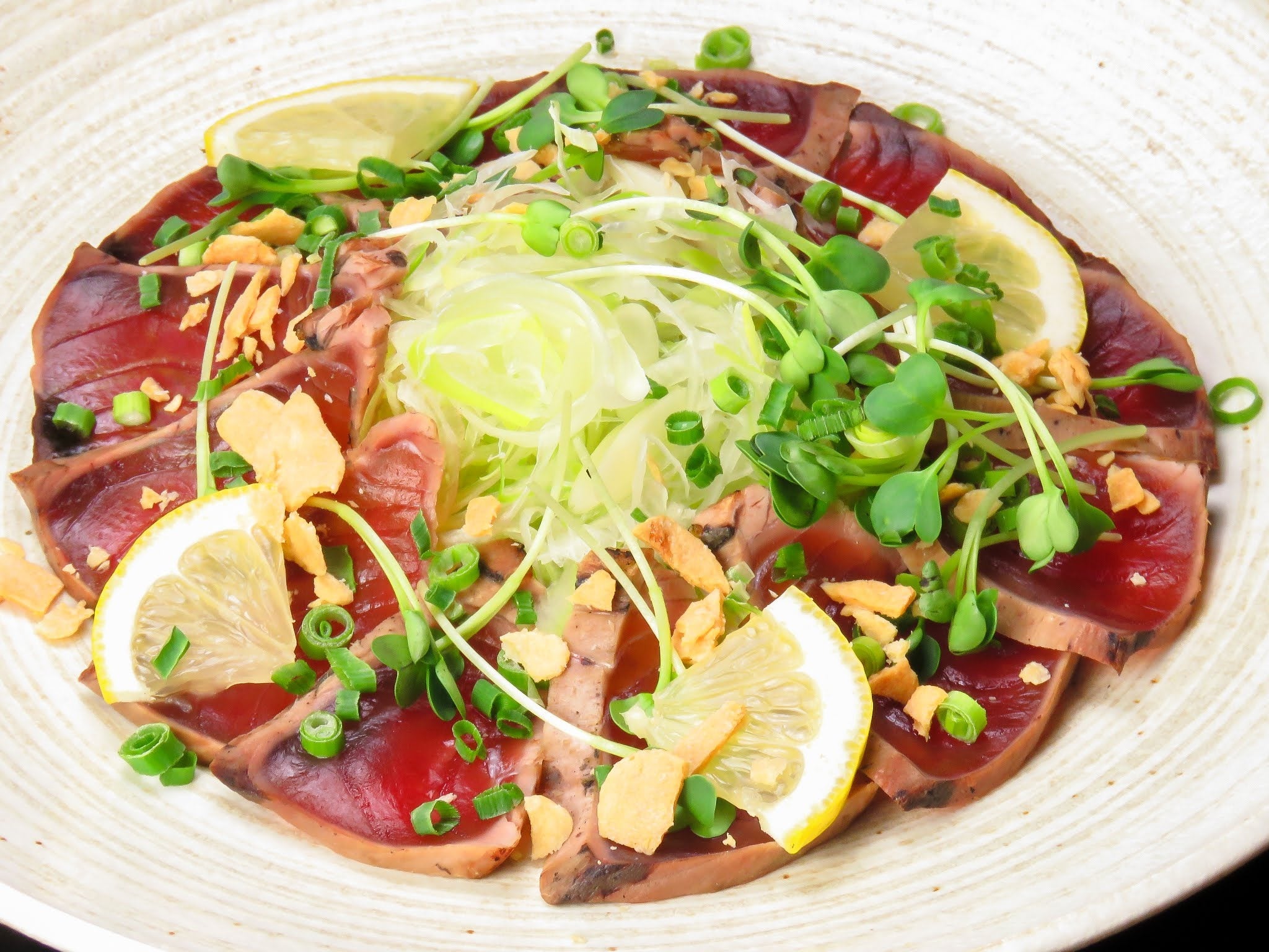鹿児島枕崎のカツオを藁で炙り燻製のような香りを出す伝統の調理法です。お酒が進みます。