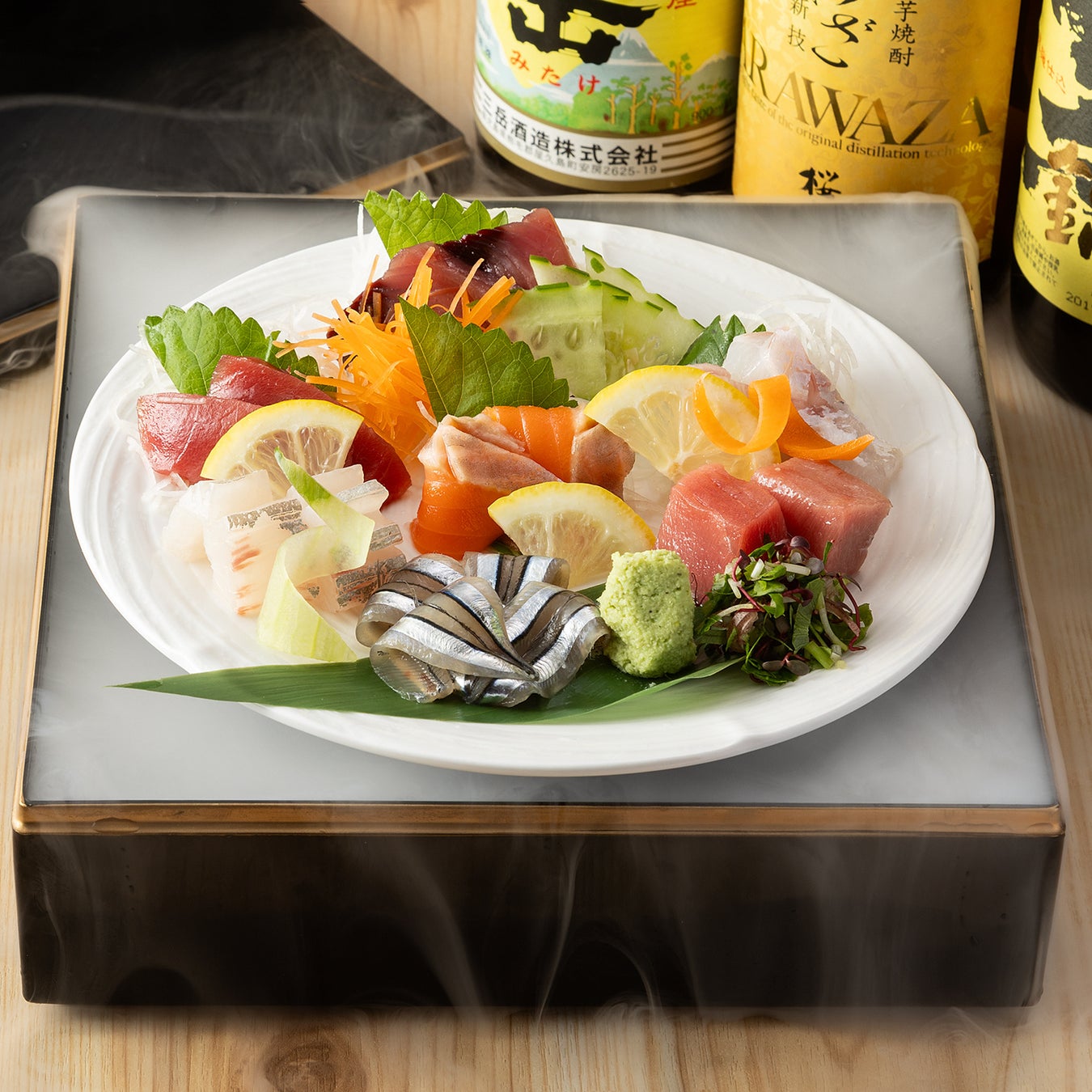 市場直送で鹿児島産の選りすぐり鮮魚の5種盛り合わせです。