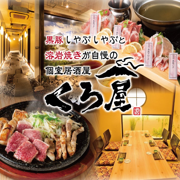 『くろ屋 ~離れ~』は、「黒豚しゃぶしゃぶ」「桜島溶岩焼」「海鮮玉手箱」「五感で楽しむ藁焼き」の4大名物、地の⾷材を使⽤して鹿児島を表現した創作メニューを愉しめるお店となっております。