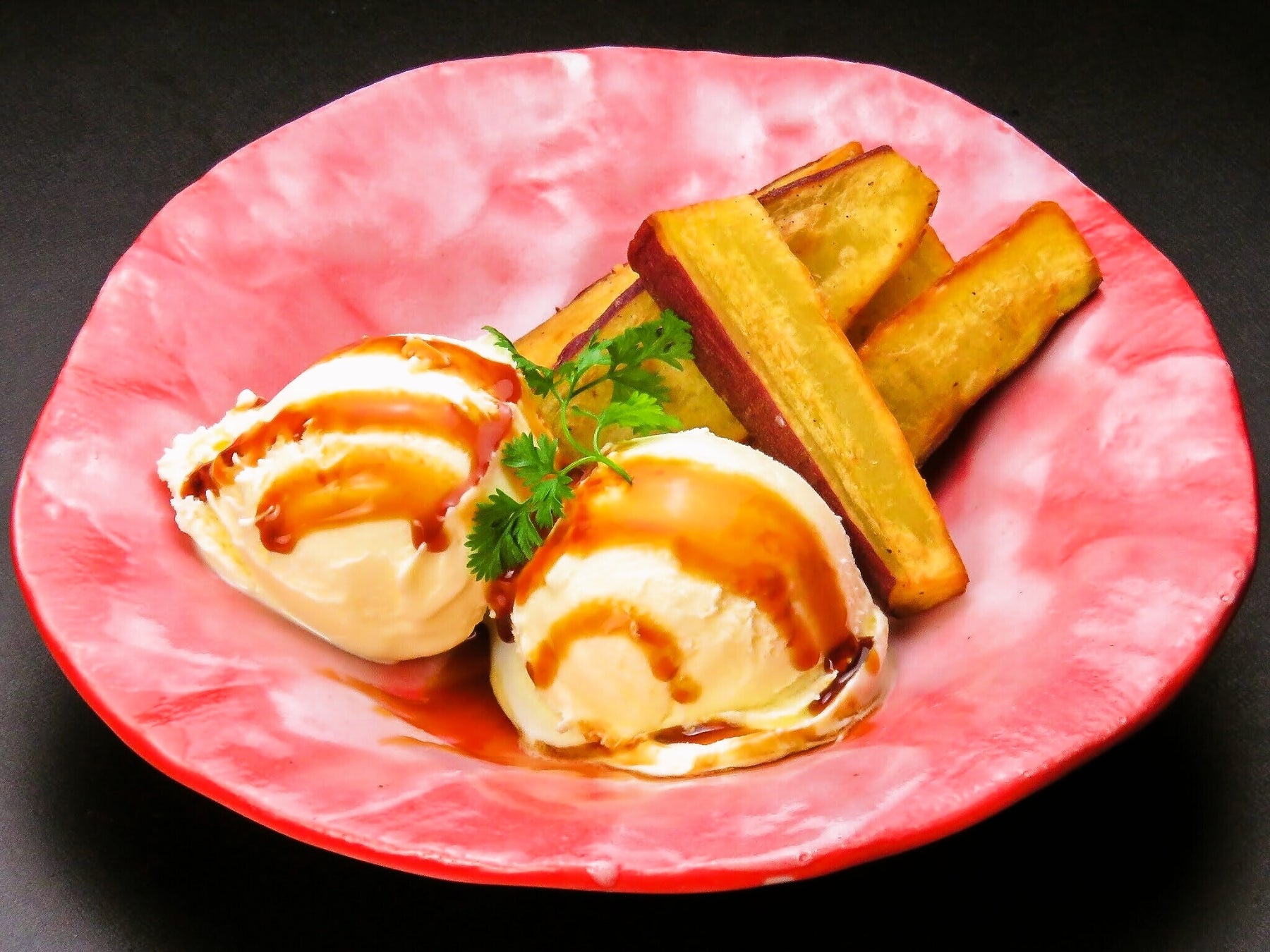 アツアツのサツマイモスティックと冷たいバニラアイスで新食感宣言♪