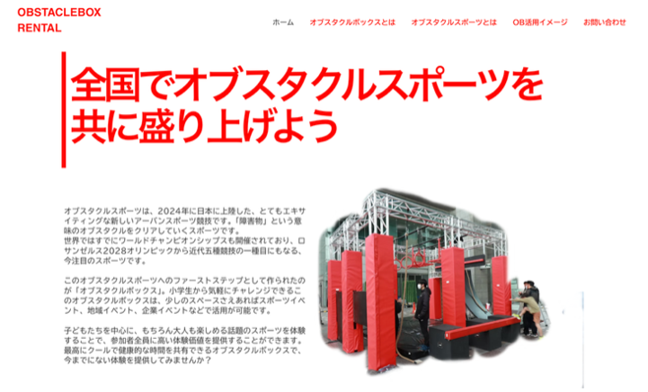 レンタル事業開始にあたり、「オブスタクルボックスレンタル」ホームページを開設しました。