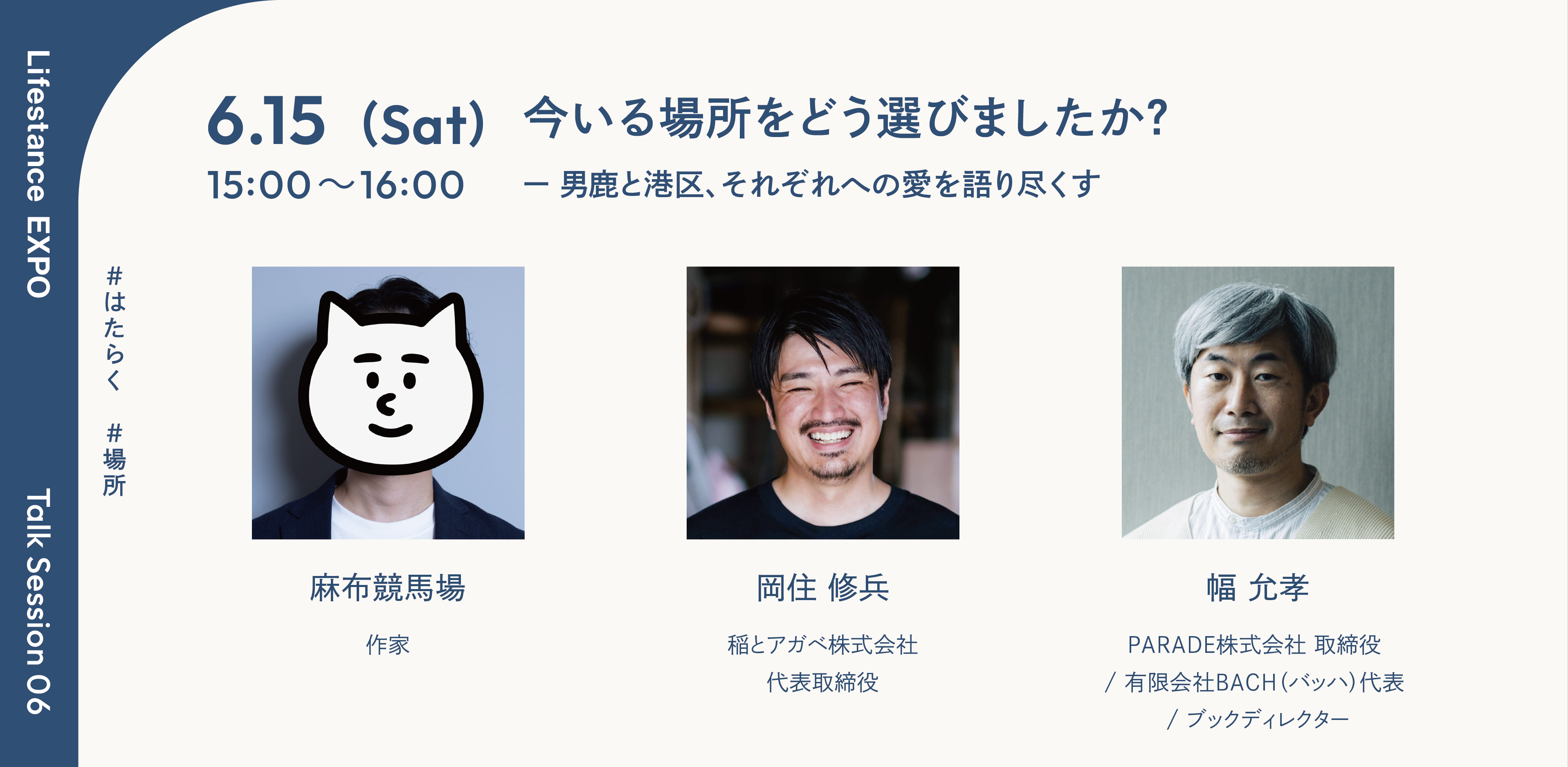 登壇者:麻布競馬場(作家)、岡住 修兵(稲とアガベ株式会社 代表取締役)、幅 允孝