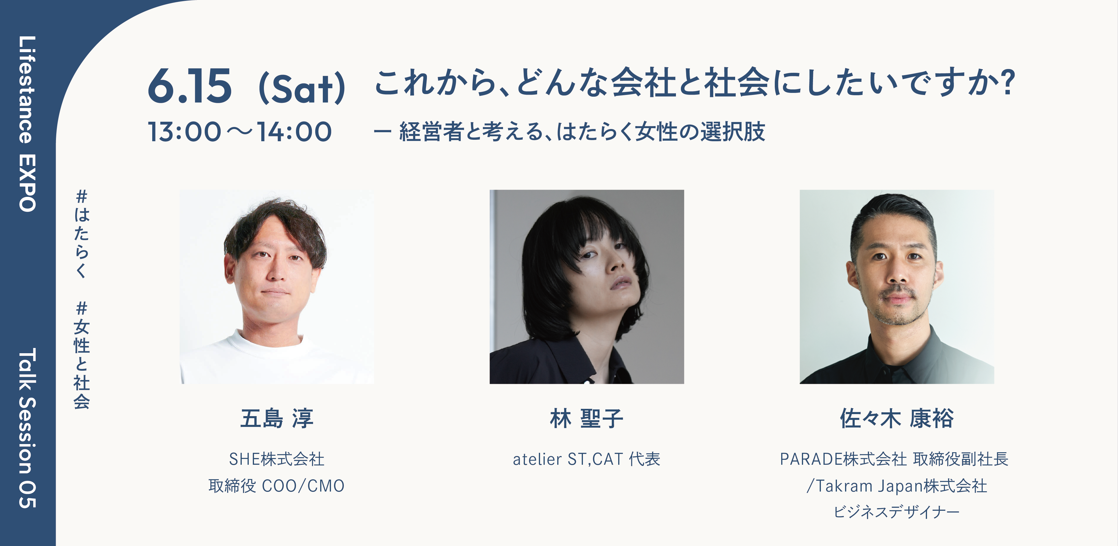 登壇者:五島 淳(SHE株式会社 取締役 COO/CMO)、林 聖子(atelier ST,CAT 代表)、佐々木 康裕