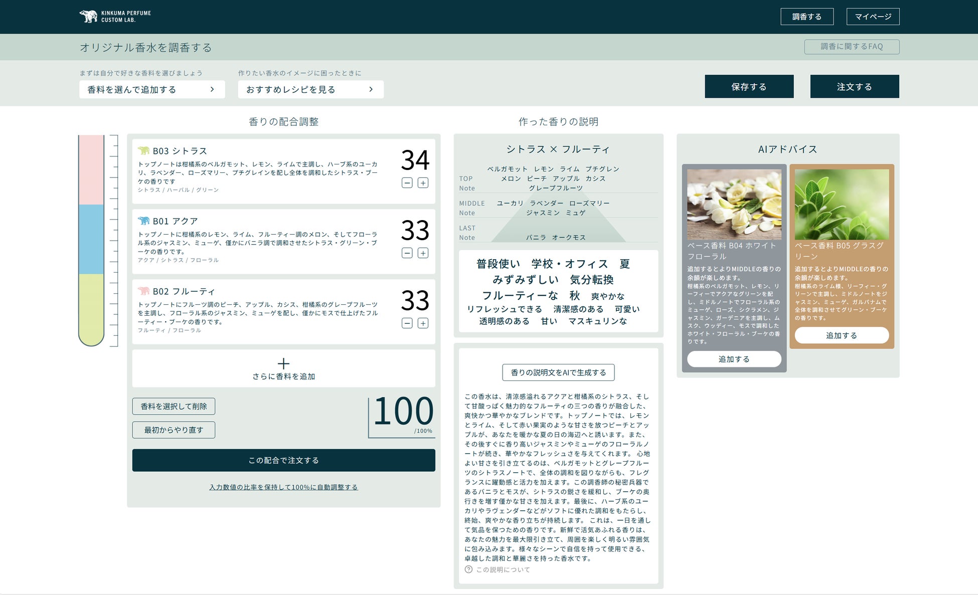 「金熊香水カスタムラボ」Web上で調香体験+オリジナル香水のオーダーができる新サービスがスタート!