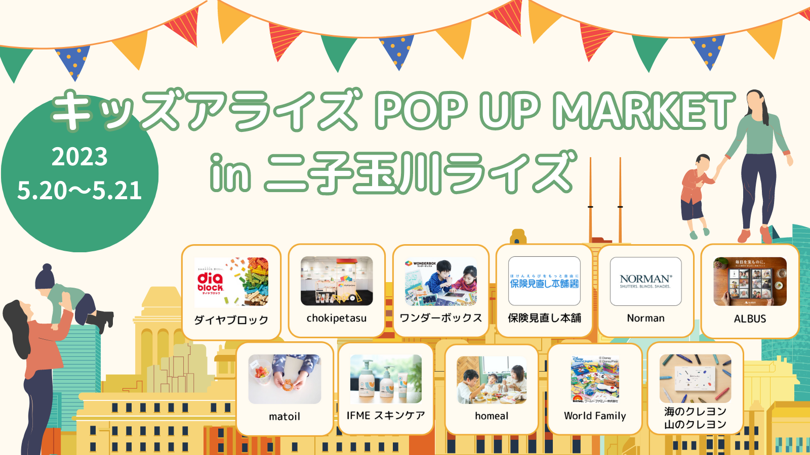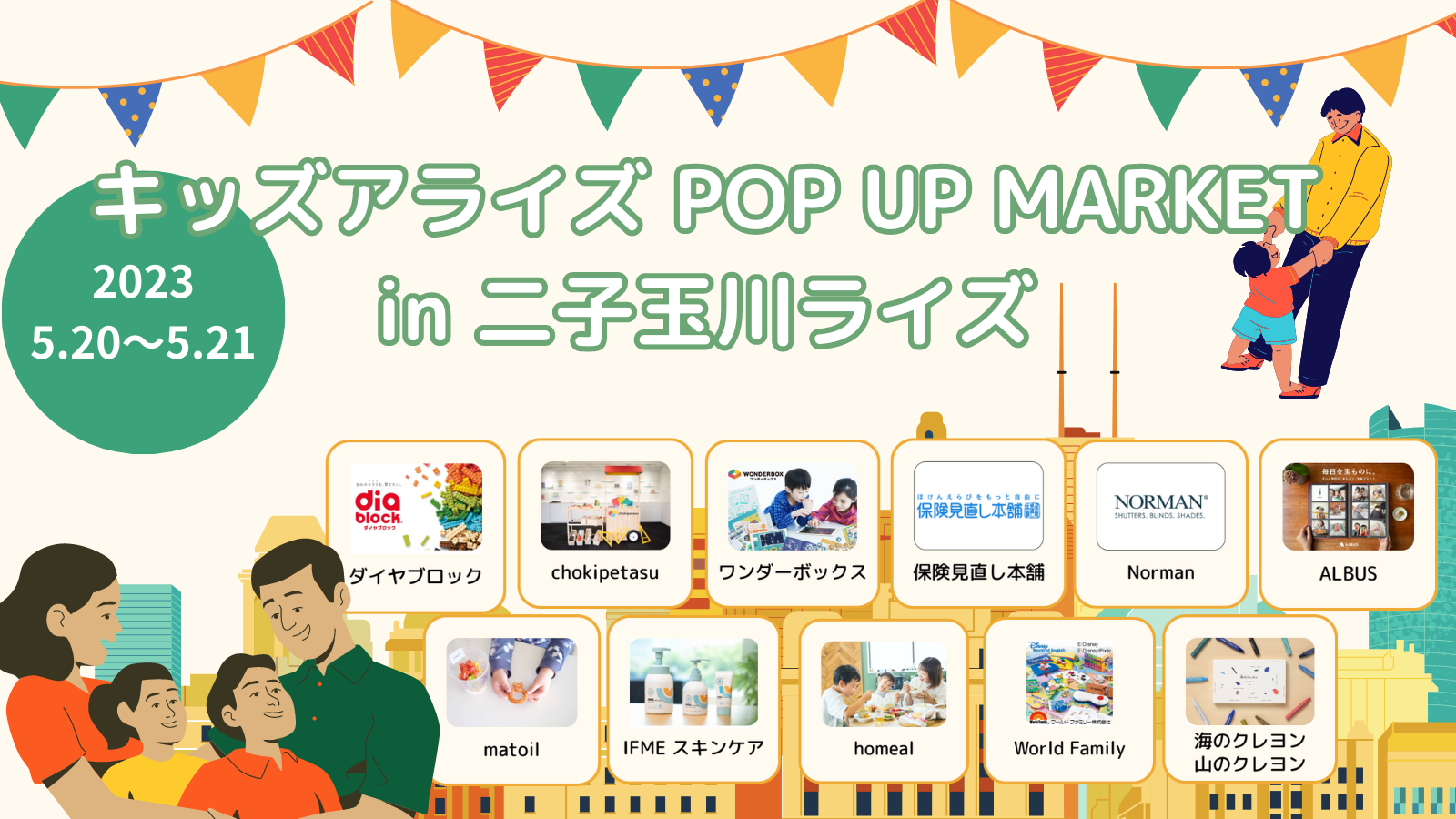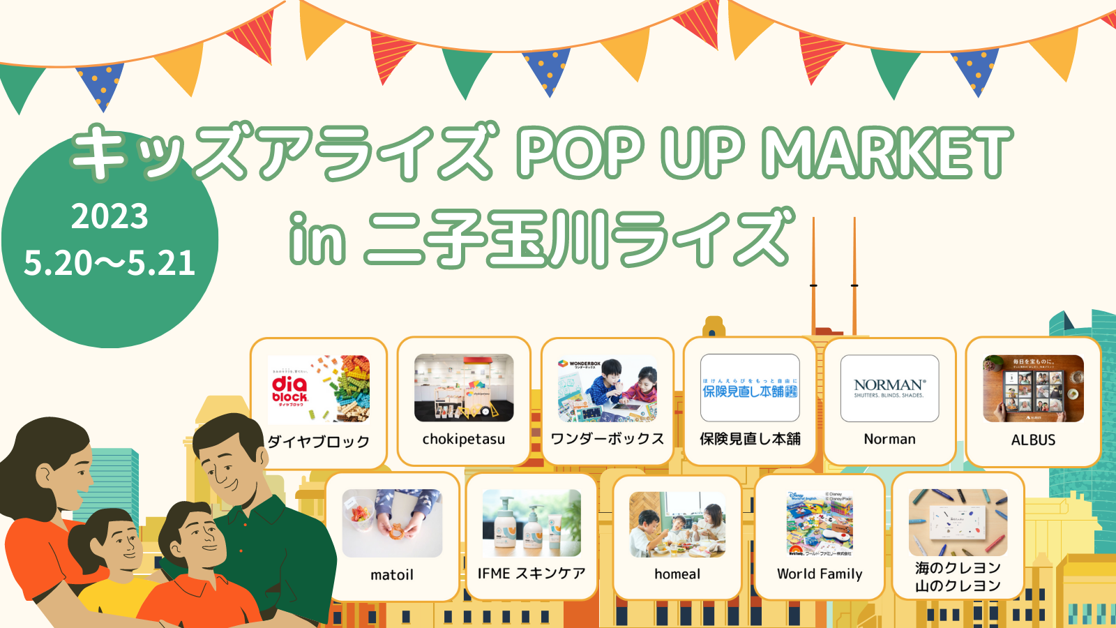 この度、株式会社工芸社が運営するキッズアライズを主催としたイベント「キッズアライズPOP UP MARKET in 二子玉川ライズ」にて、新たに出展する企業が決定したことをお知らせします。