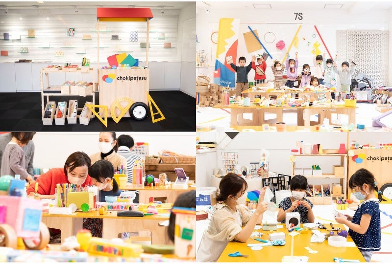 「chokipetasu(チョキぺタス)」は、カタチにすることを目指さない図工室。たくさんの紙や珍しいカタチの廃材をを使い、図工・創作を楽しみます。