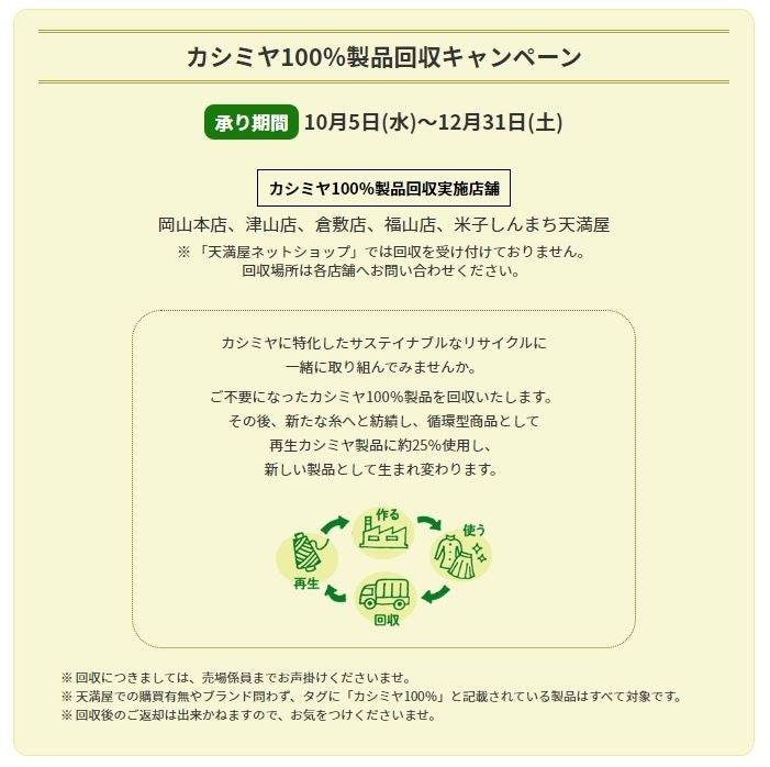 カシミヤ資源の循環を目指し天満屋での回収キャンぺーンに共創しています