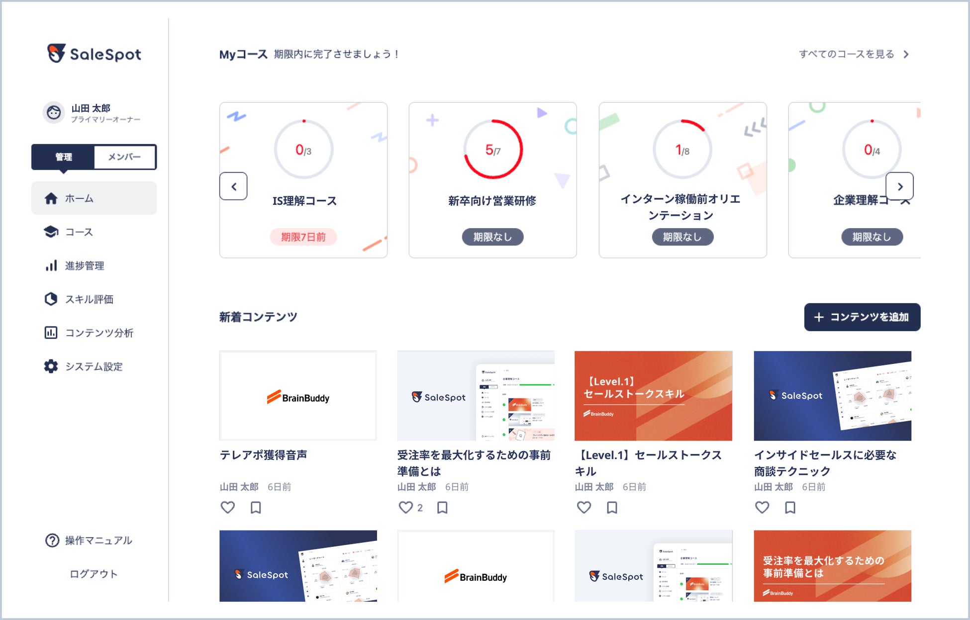 スキルに紐づいた学習コンテンツや営業ナレッジをプラットフォーム上で簡単に検索可能。テスト機能を搭載した学習コースで知識・スキルの浸透を実現します。