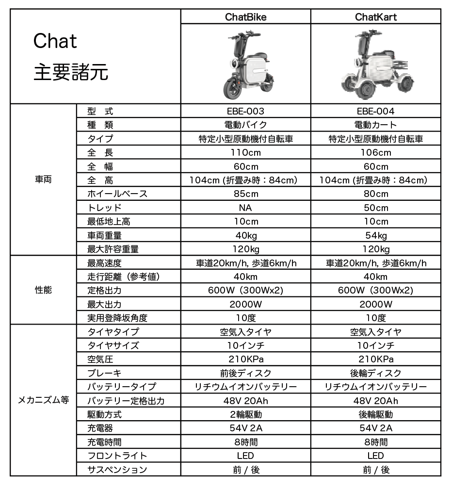 ハンドレッス、特定小型原付タイプで電動2輪と電動4輪の2種類の新製品『ChatBike / ChatKart』を【ジャパンモビリティショー2023】に出展