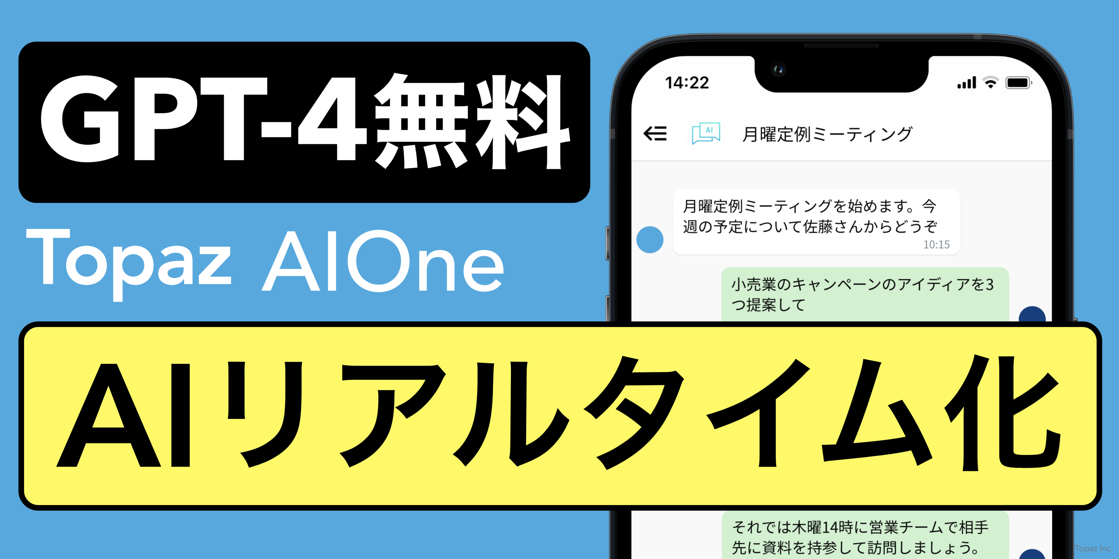 Topaz合同会社は、2023年4月12日(水)より画期的なAIプラットフォーム「AIOne」で提供中のOpenAI社GPT-4、ChatGPT(GPT-3.5)にて、生成AIからの回答をリアルタイムで順次表示する、「AI回答リアルタイム表示機能」をリリースしました。