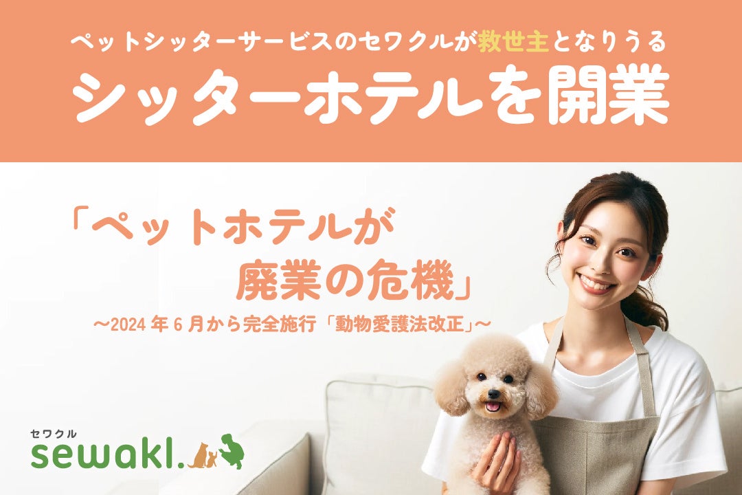 ご家庭にプロのペットシッターを派遣し、飼い主不在時のペットのお世話やお散歩の代行を行うサービス「セワクル」を運営する株式会社ラニマル(本社 : 東京都港区、代表取締役 : クレーン 淳、設立:2021年5月)は、2024年6月に完全施行される「動物愛護法」の改正に伴い、6月1日からシッターの自宅でペットをお預かりするサービス「セワクルシッターホテル」を開始することを公表いたします。