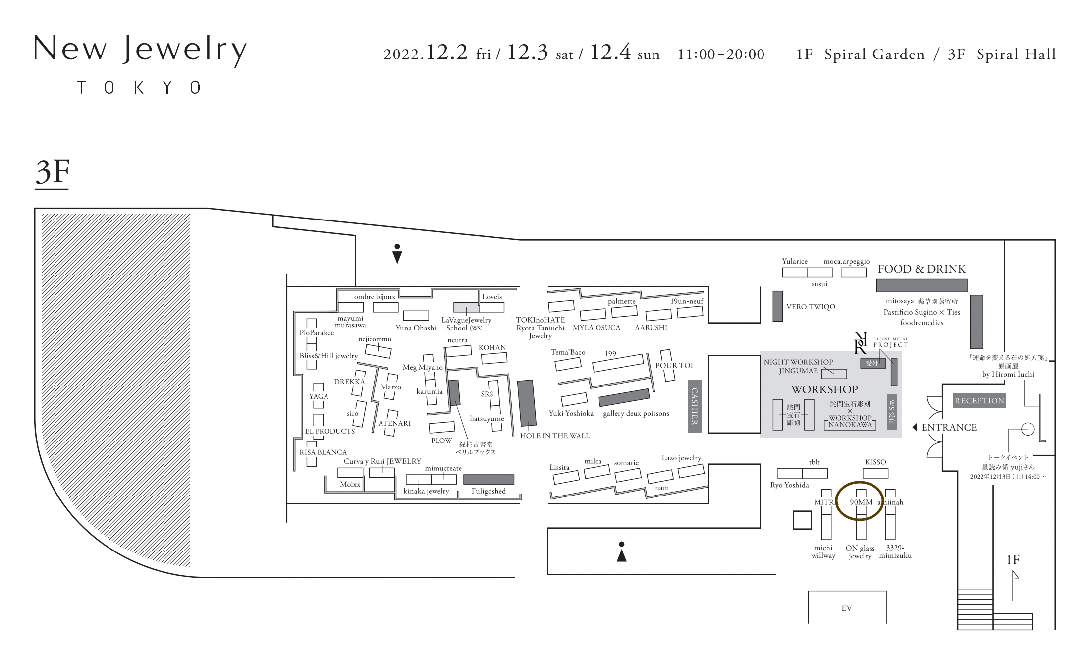 11月20日(日)〜26日(土)の7日間限定で開催する「西武渋谷店」でのショールームでは『90MM』が使用する琥珀の採掘地、岩手県久慈市の自然風景や制作過程の写真を展示いたします。期間中の土日のみ商品の受注販売も行います。12月2日(金)〜4日(日)には、表参道のSPIRALにて開催される「New Jewelry TOKYO 2022」へ出展、ブランド初となる展示即売会を予定しております。※アイテムにより数に限りがございます。予めご了承ください。