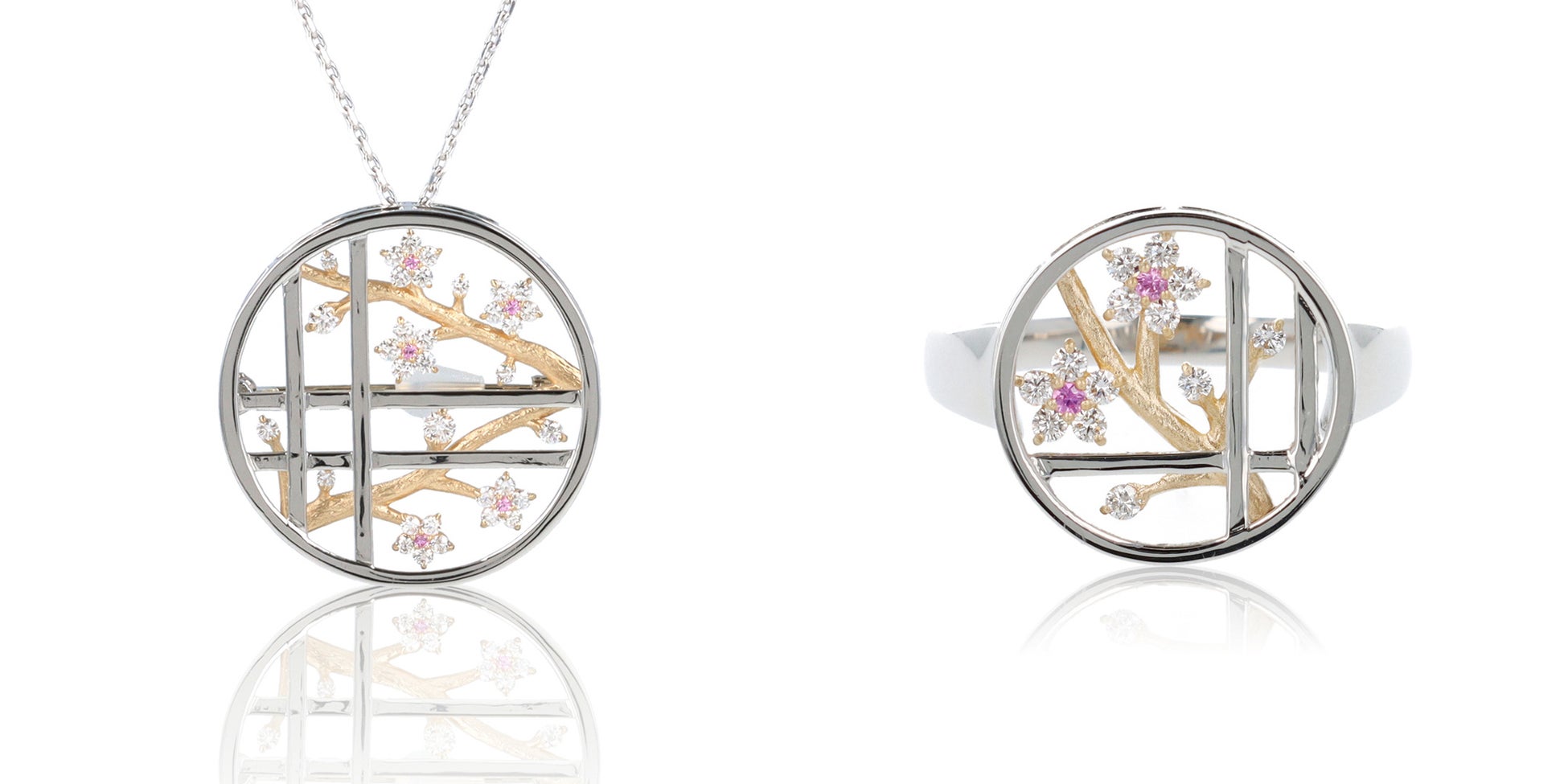 日本の美しい情景と伝統的なモチーフをジュエリーへと昇華した“日本の心”を纏う丸窓シリーズ。