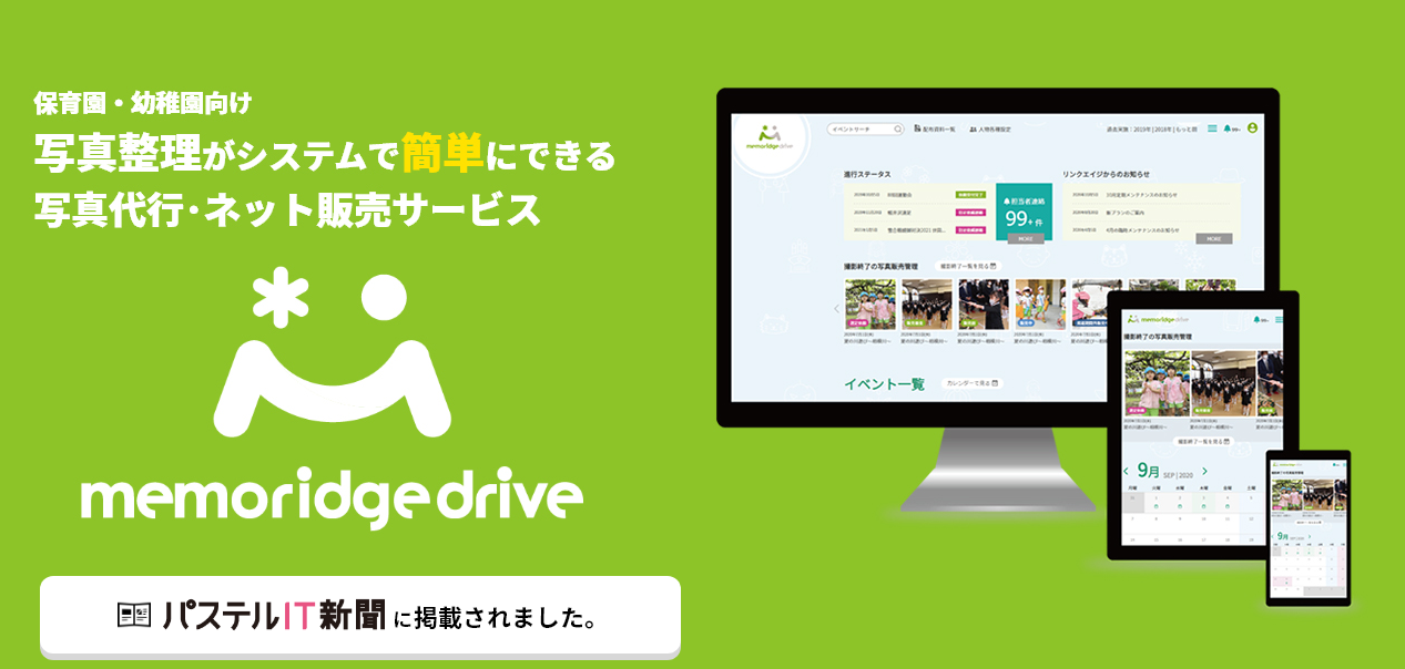 - 私自身が現役の保育教諭で、担任が子ども達の様子を撮影し販売しています。メモリッジはプロのカメラマンさんが撮影しているので、子ども達の自然な表情、行事での頑張っている瞬間、先生や友達との関わっている姿を上手に撮影して頂いてるのでとても嬉しいです。ありがとうございます。