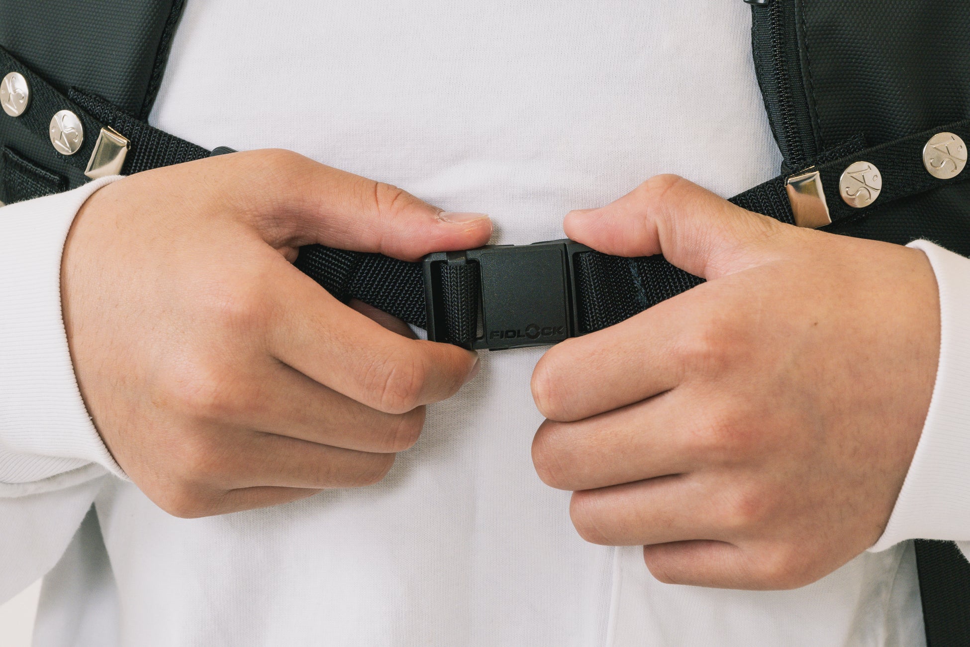特徴:リュックのズレ防止/Fidlock製マグネット式バックル/国内縫製