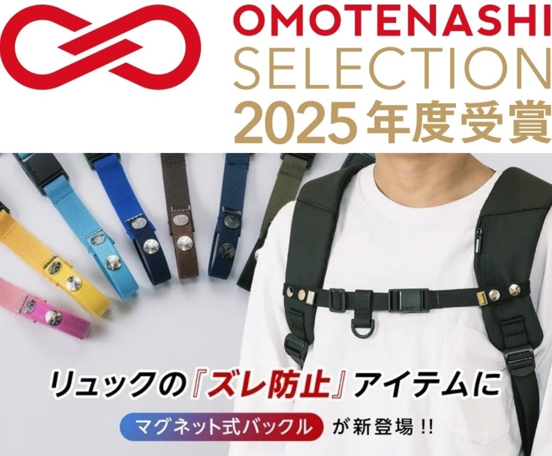 バッグ雑貨ブランド「Bag雑貨SweetAsia」(株式会社寿々照/佐賀県佐賀市、代表取締役 藤松佐和子)は、リュック用ズレ防止ベルト『Goodチェスト☆マグネット』で、「おもてなしセレクション 2025」(主催:OMOTENASHI NIPPON 実行委員会)を受賞しました。