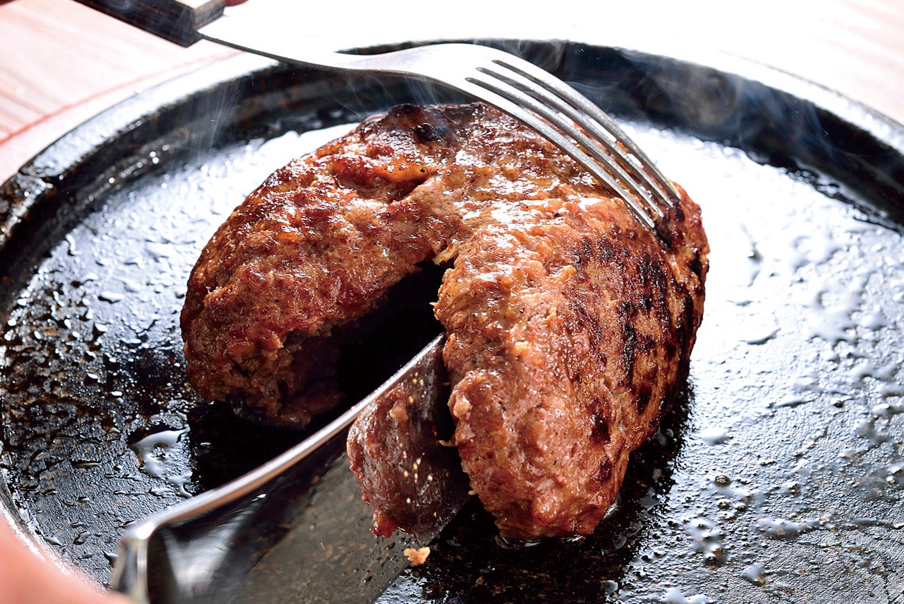 仕上げはお客様の目の前でスタッフがハンバーグを豪快にカットし、焼き付けを行います。溢れ出る肉汁とソースが絡んだ最高の味わいを是非お楽しみください。